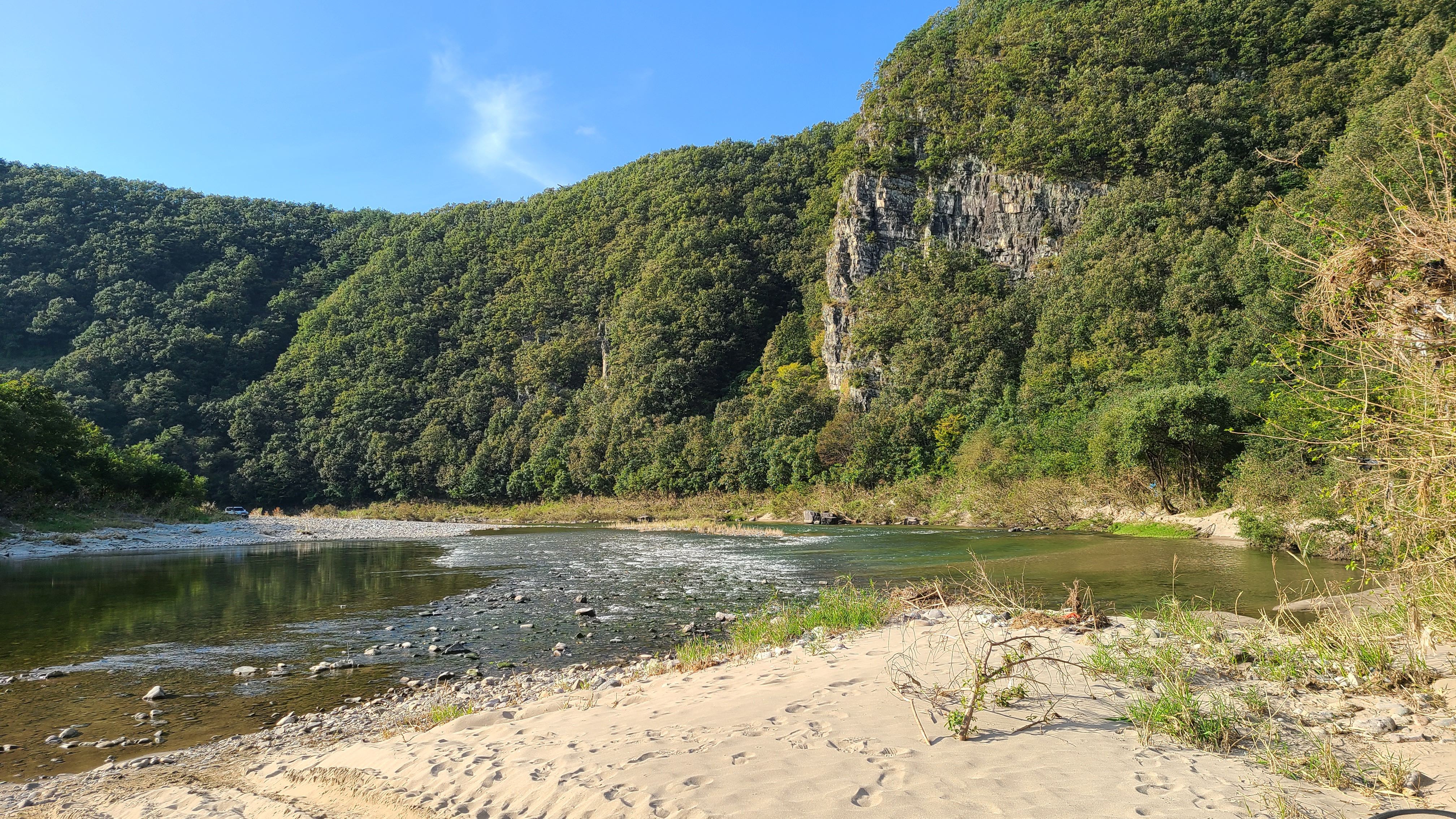 자갈이 보여 맨발로 건넜지만 언제나 안전제일...