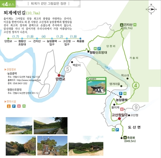 퇴계이황선생이 거늴던 길을 트래킹 코스로 재현한 둘레길이다.