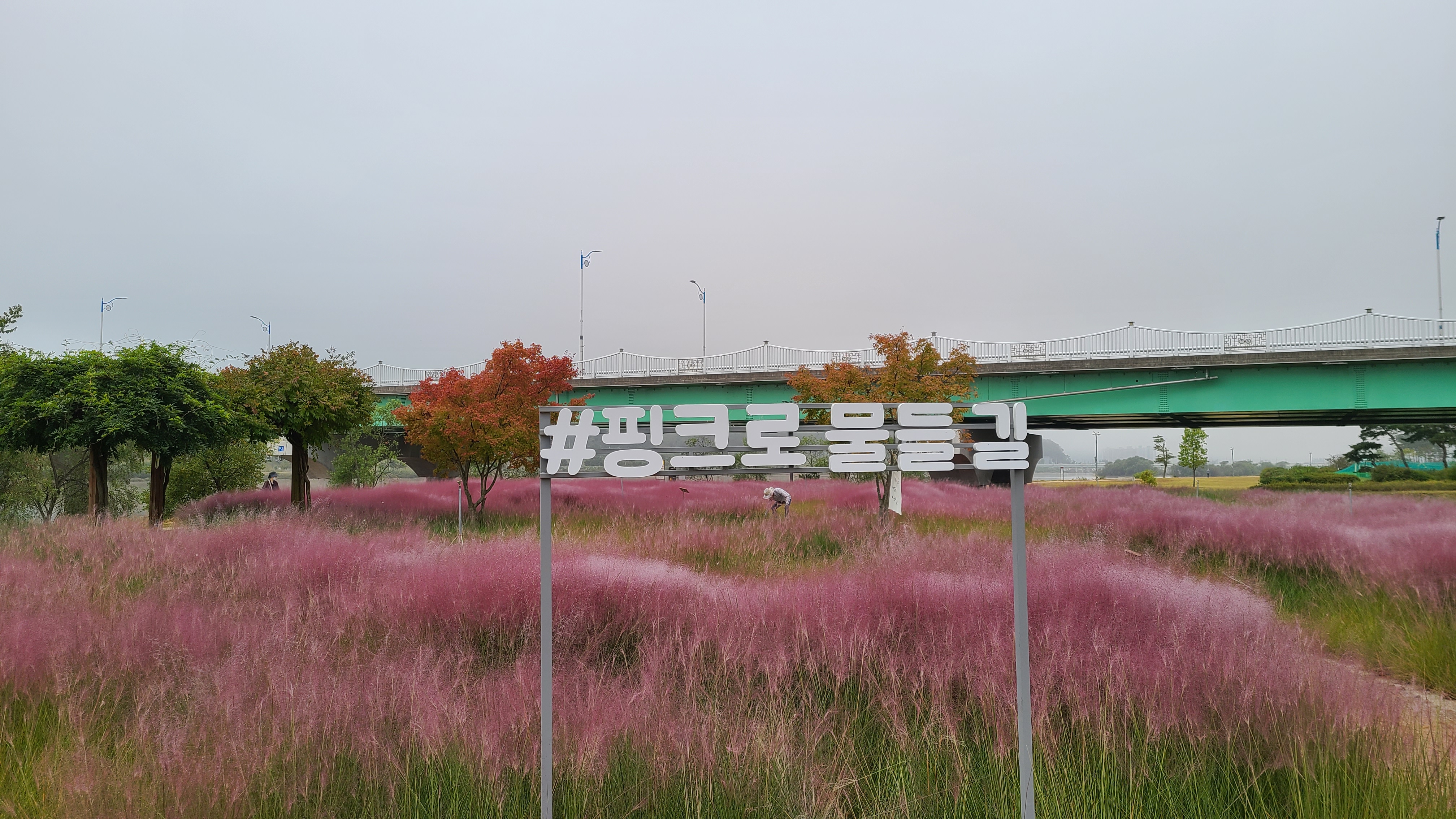 낙동강변 시민공원에 핑크뮬리가 개화했다.