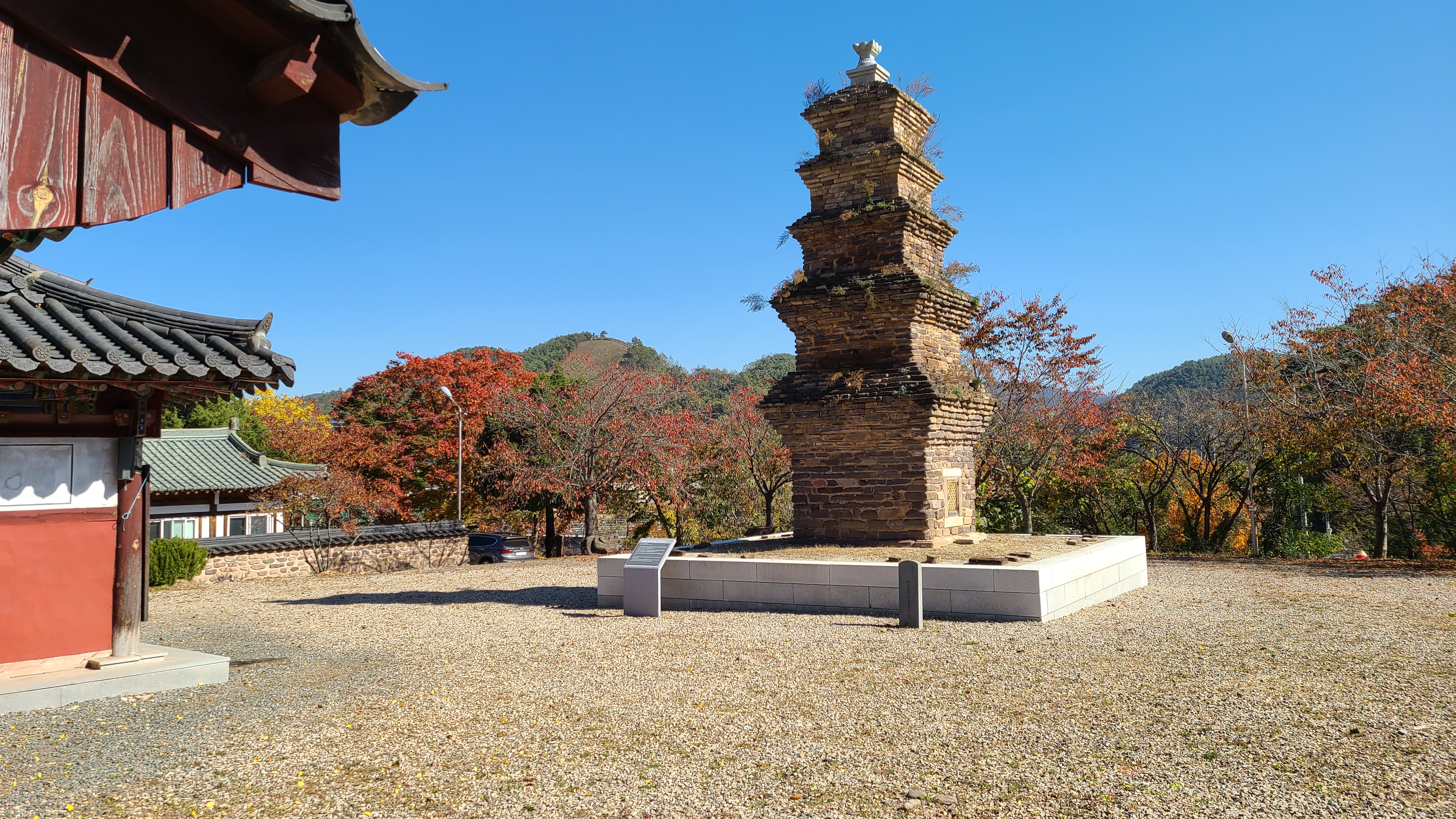 삼층석탑과 강을 사이에 두고