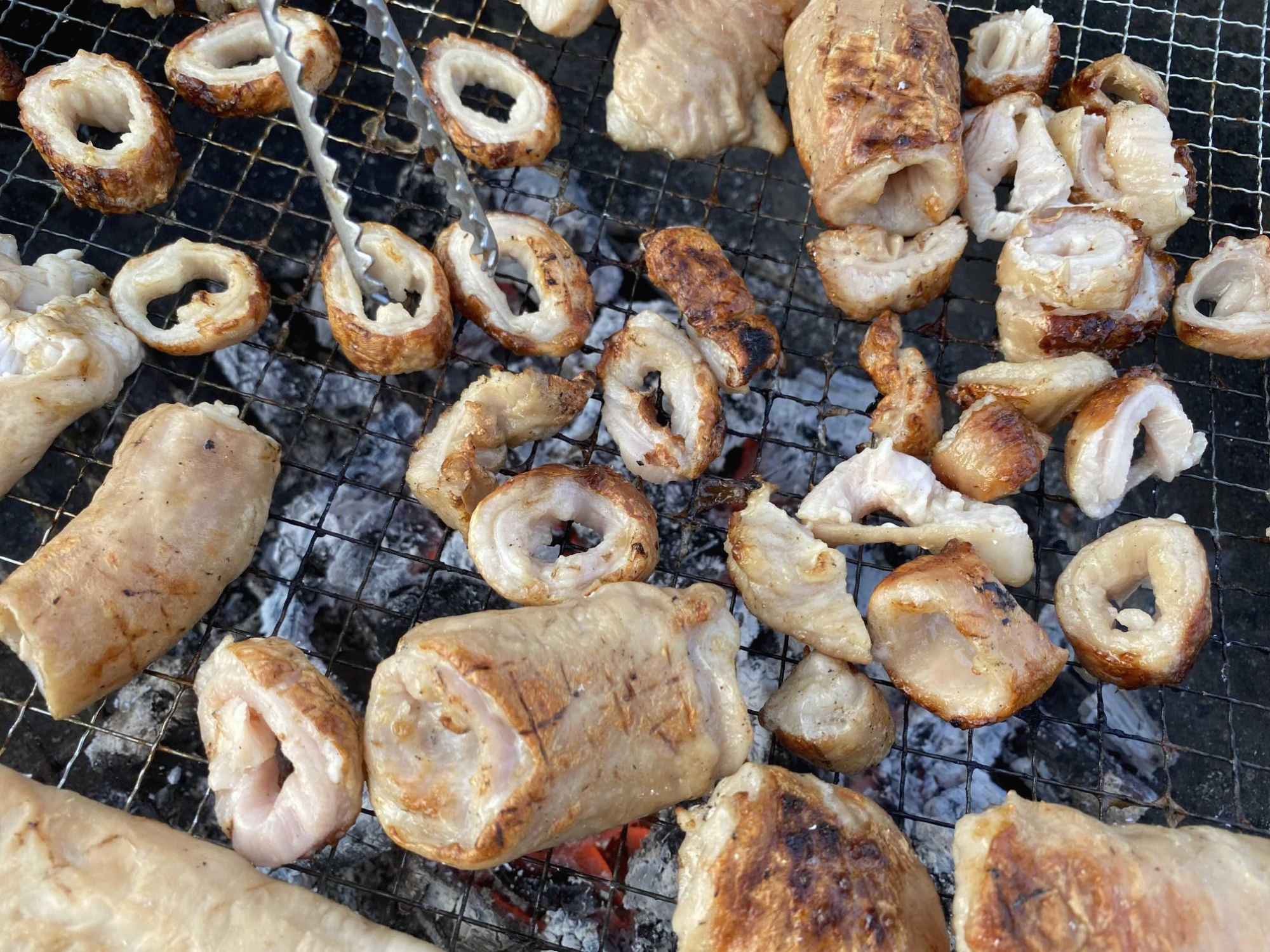 껍질이 쉽게타서 조금 익히다 내장이 다 쏟아져나온다.