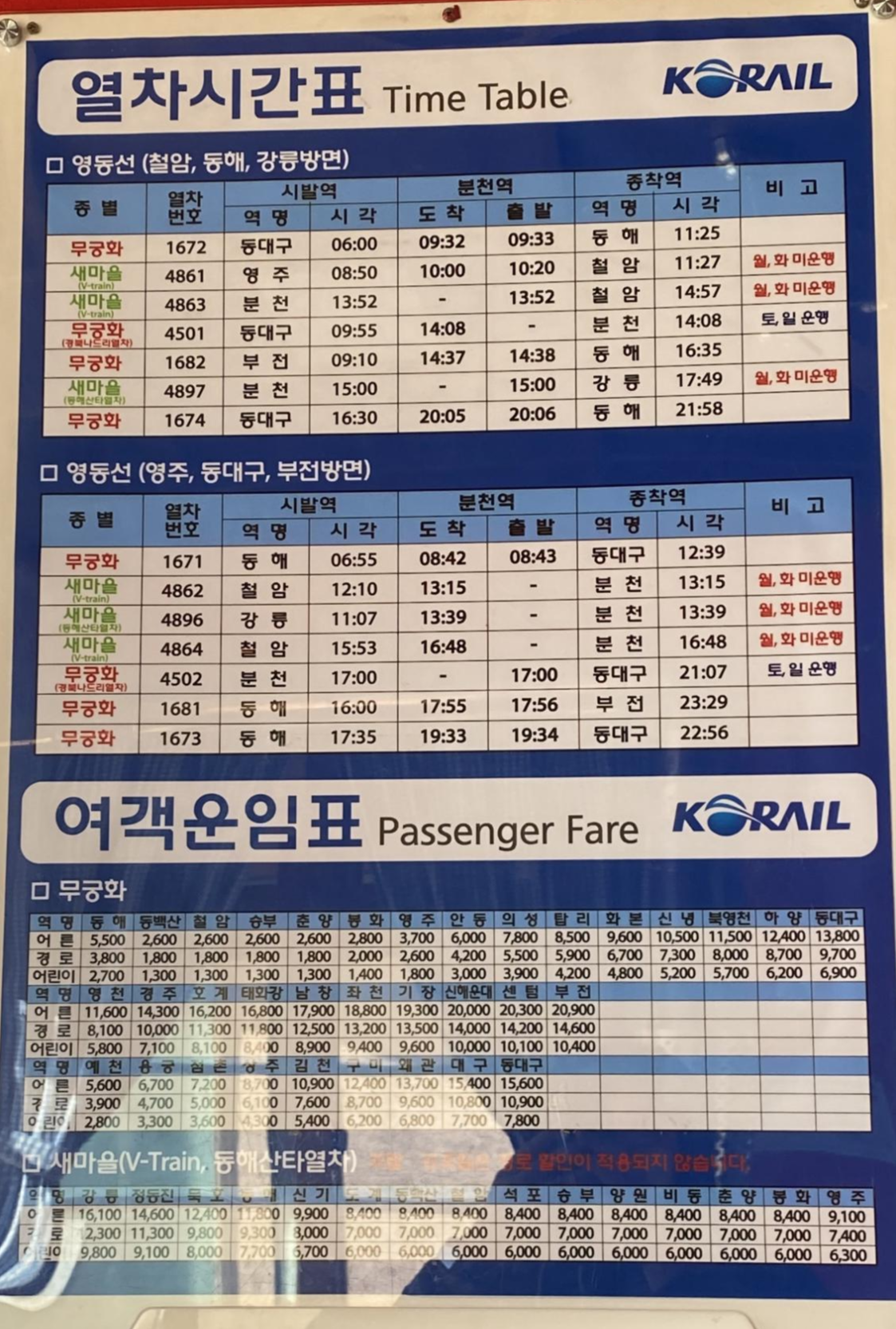 분천역 협곡열차 시간표