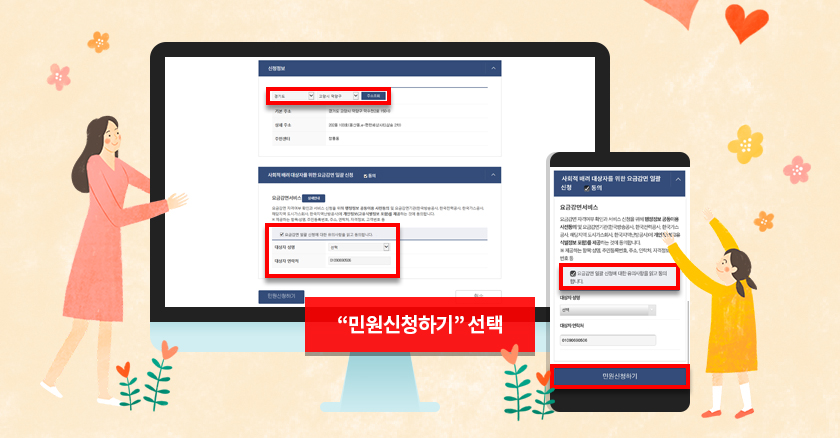 사회적 배려 대상자의 전기요금, 텔레비전(TV) 수신료, 도시가스 요금, 지역난방요금 등의 감면을 한 번에 신청할 수 있는 서비스입니다.