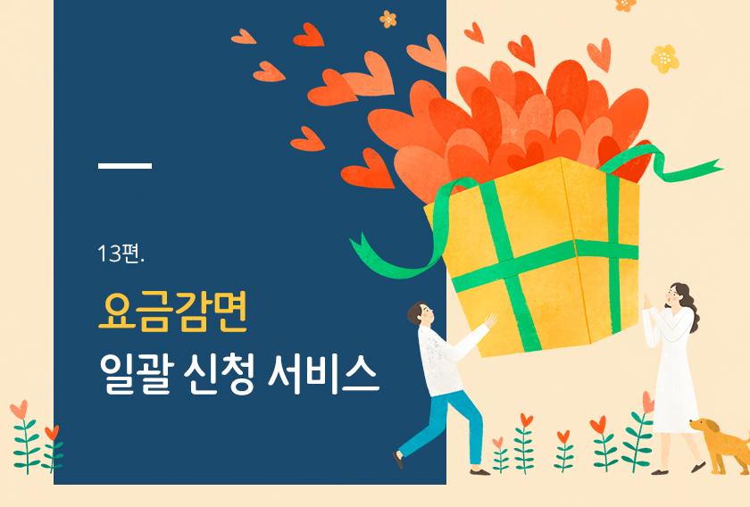 요금감면 일괄 신청 서비스란?사회적 배려 대상자의 전기요금, 텔레비전(TV) 수신료, 도시가스 요금, 지...