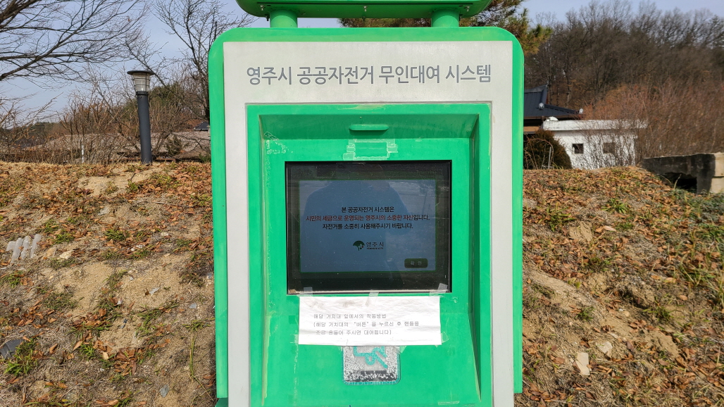 마을을 둘러볼수 있는 자전거 무료대여소.