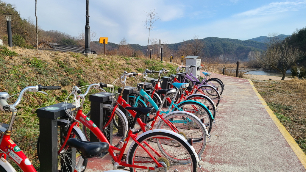 마을을 둘러볼수 있는 자전거 무료대여소.