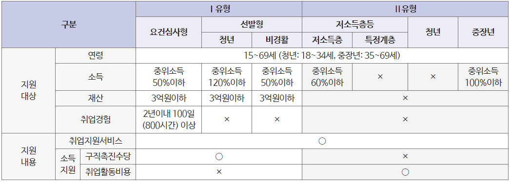 ※ 국민취업지원제도는 Ⅰ유형과 Ⅱ유형으로 지원됩니다.