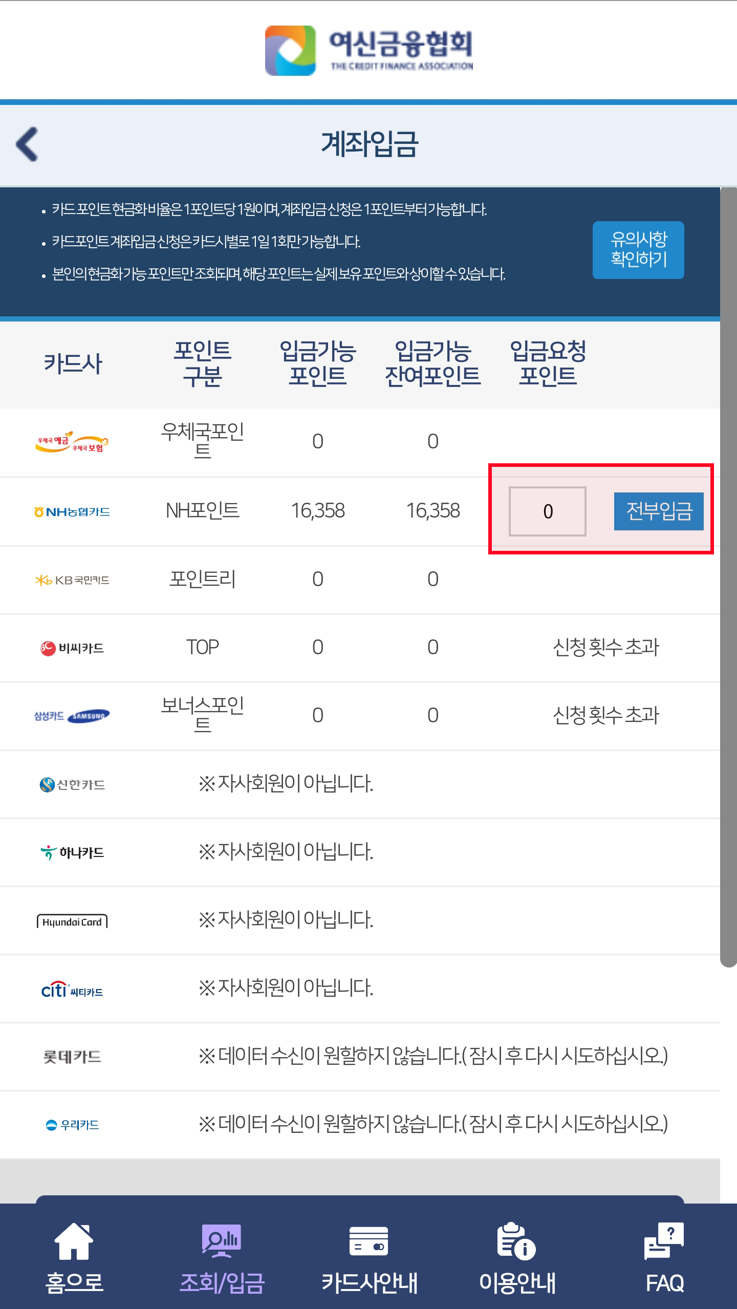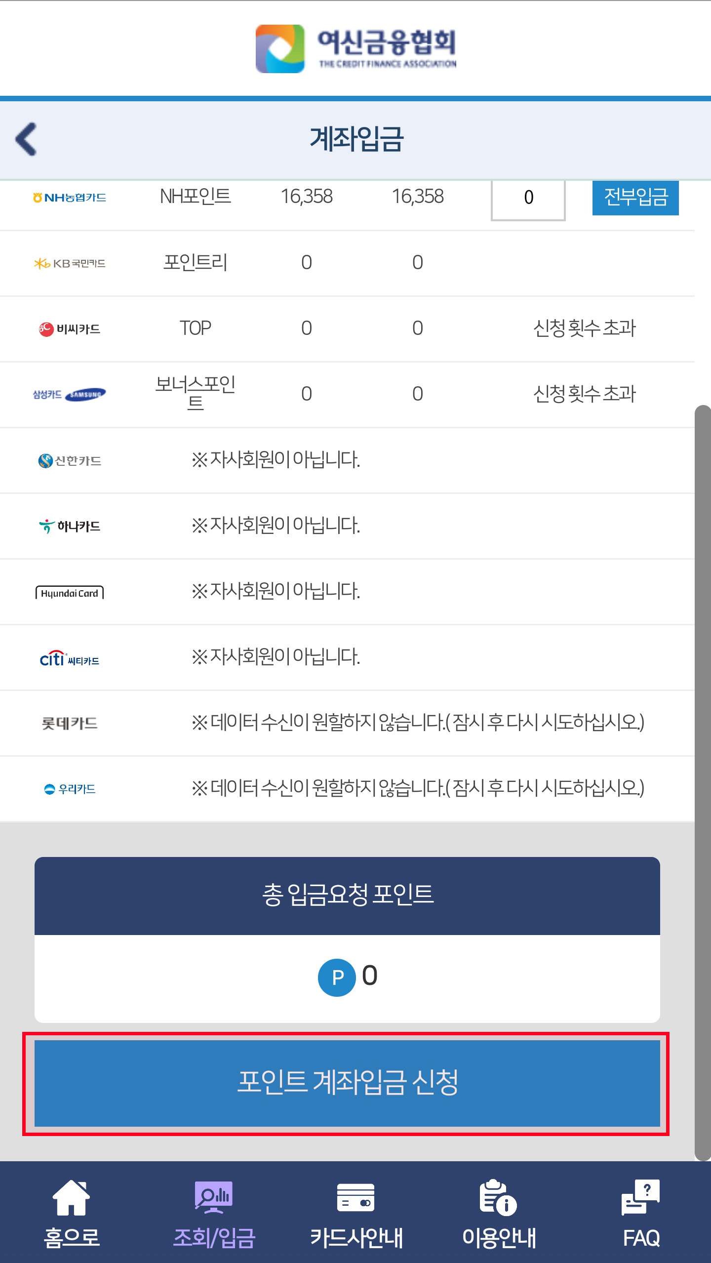 ◎ 카드포인트조회/입금 앱 (아이폰 사용자 이용 불가)