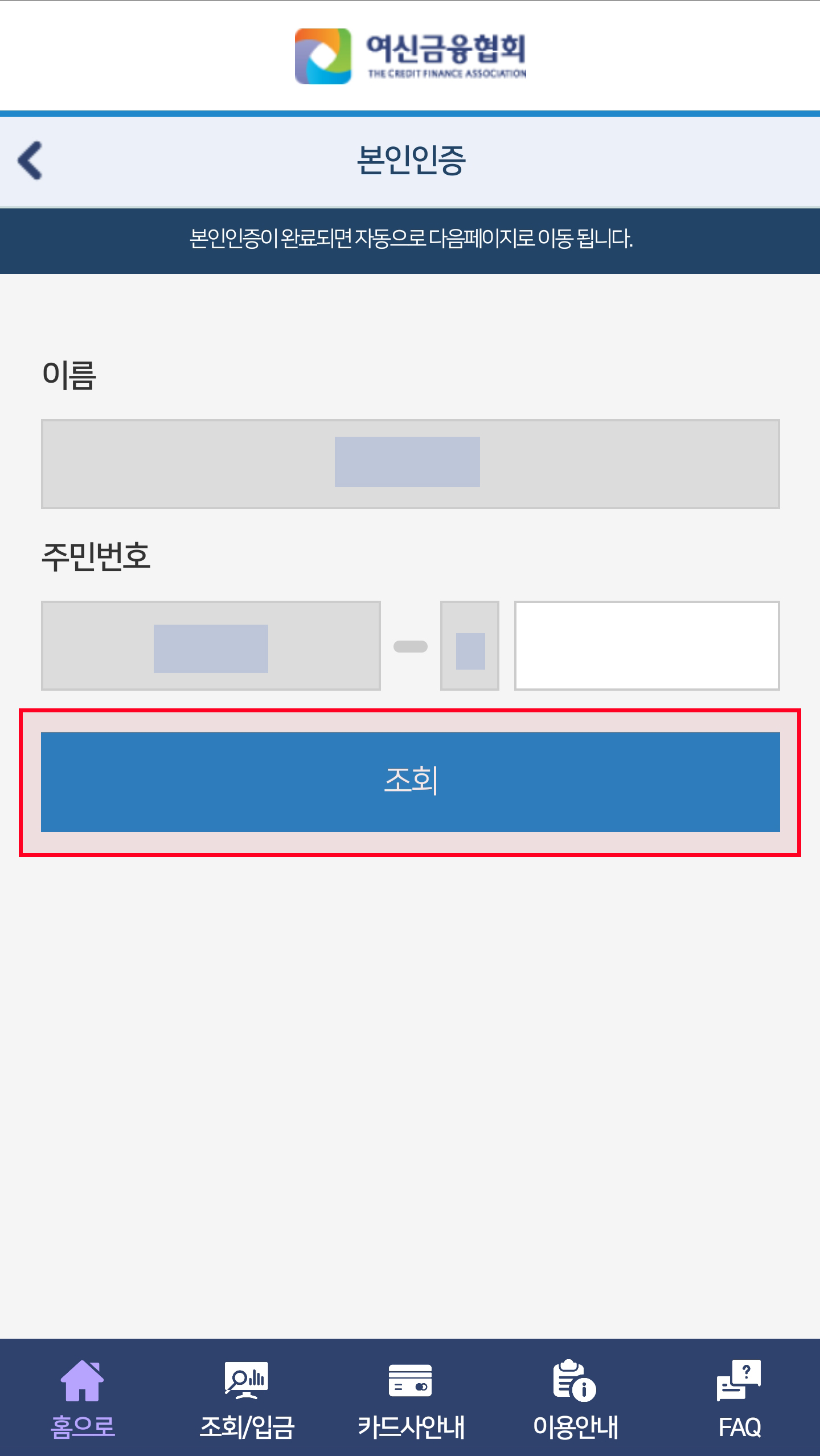 여신금융협회 앱을 통한 조회