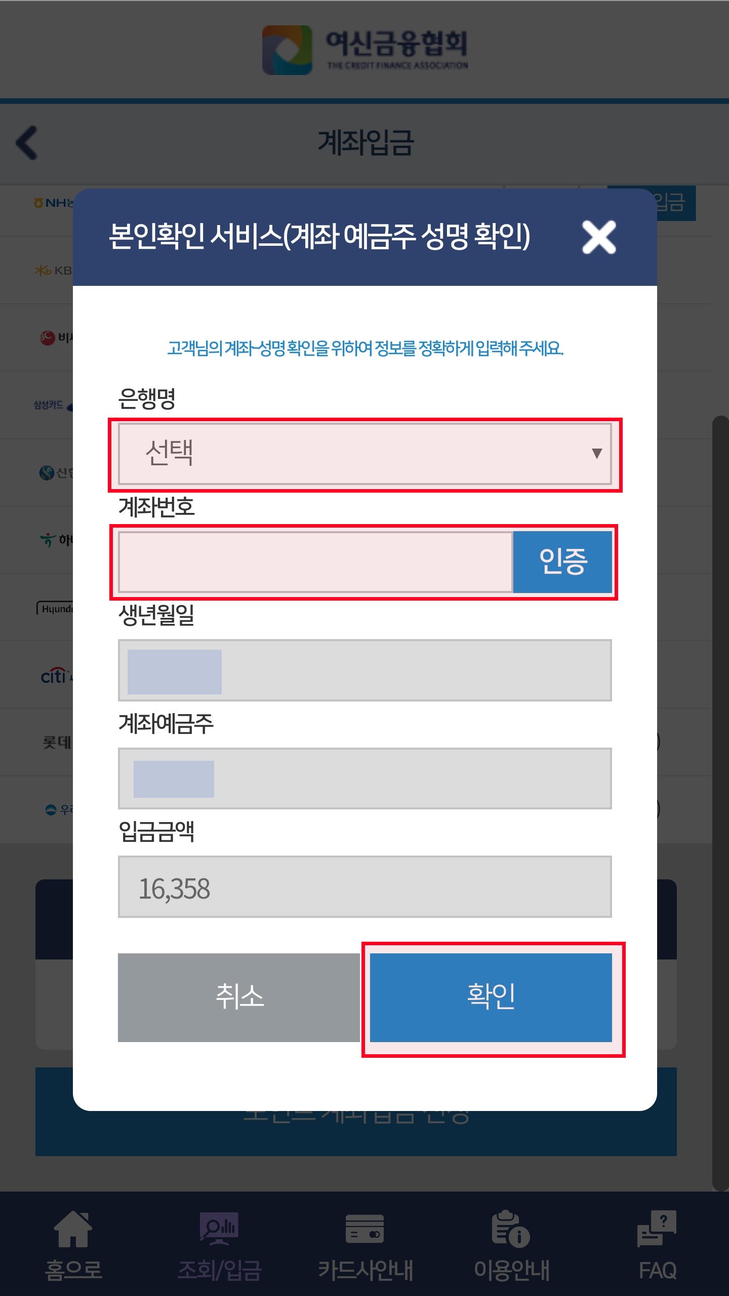 여신금융협회 앱을 통한 조회