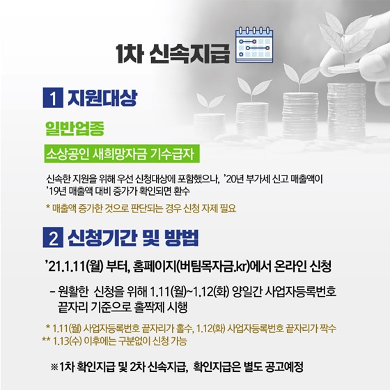 ※ 1차 확인지급 및 2차 신속지급, 확인지급은 별도 공고예정