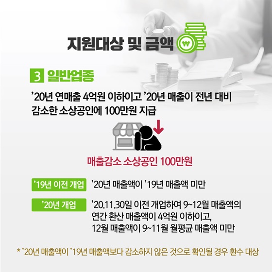 ※ 2020년 매출액이 2019년 매출액보다 감소하지 않은 것으로 확인될 경우 환수 대상
