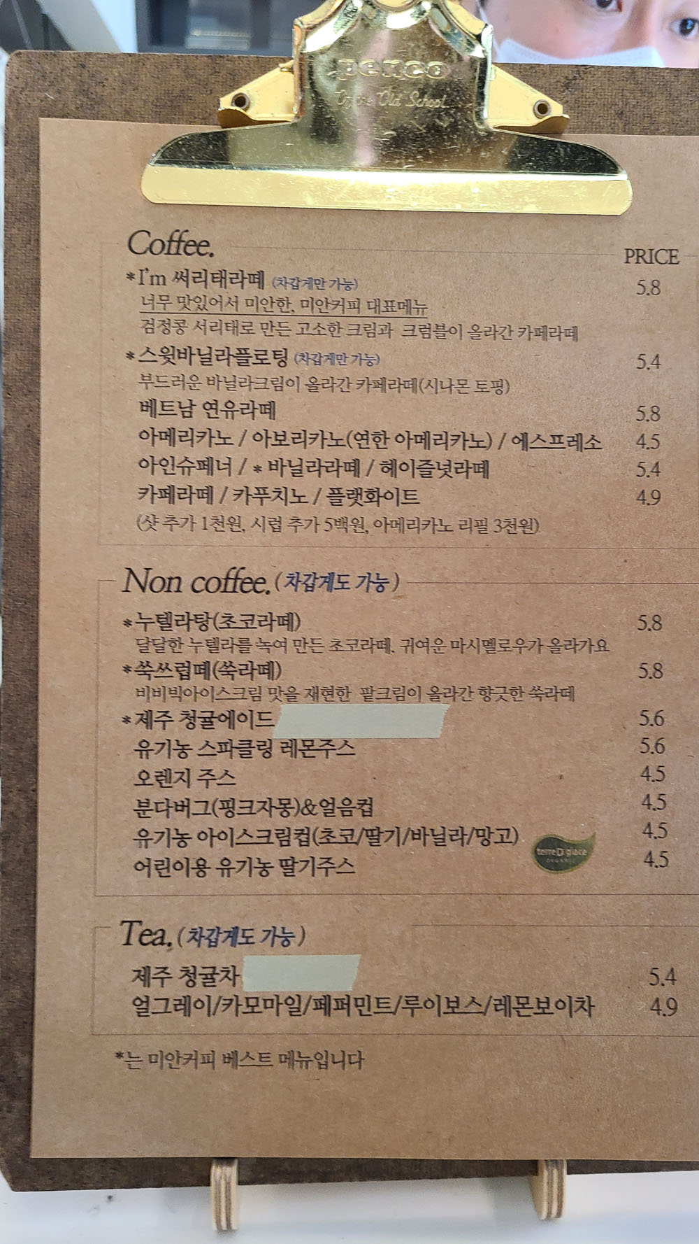 미안커피 메뉴
