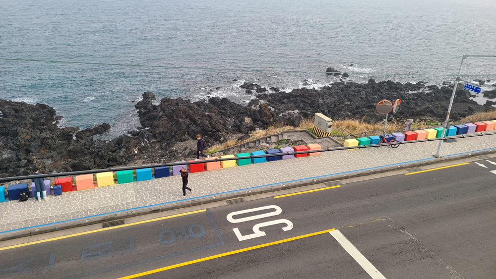 언제나 옳은 제주도 도두동 무지개해안도로 제주 도두동 해안도로에 무지개가 떴다. 도로 경계석에 알록달록 무지개색을 입혀 인생샷 포토존으로 등극한 도두동 무지개해안도로가 그것이다.