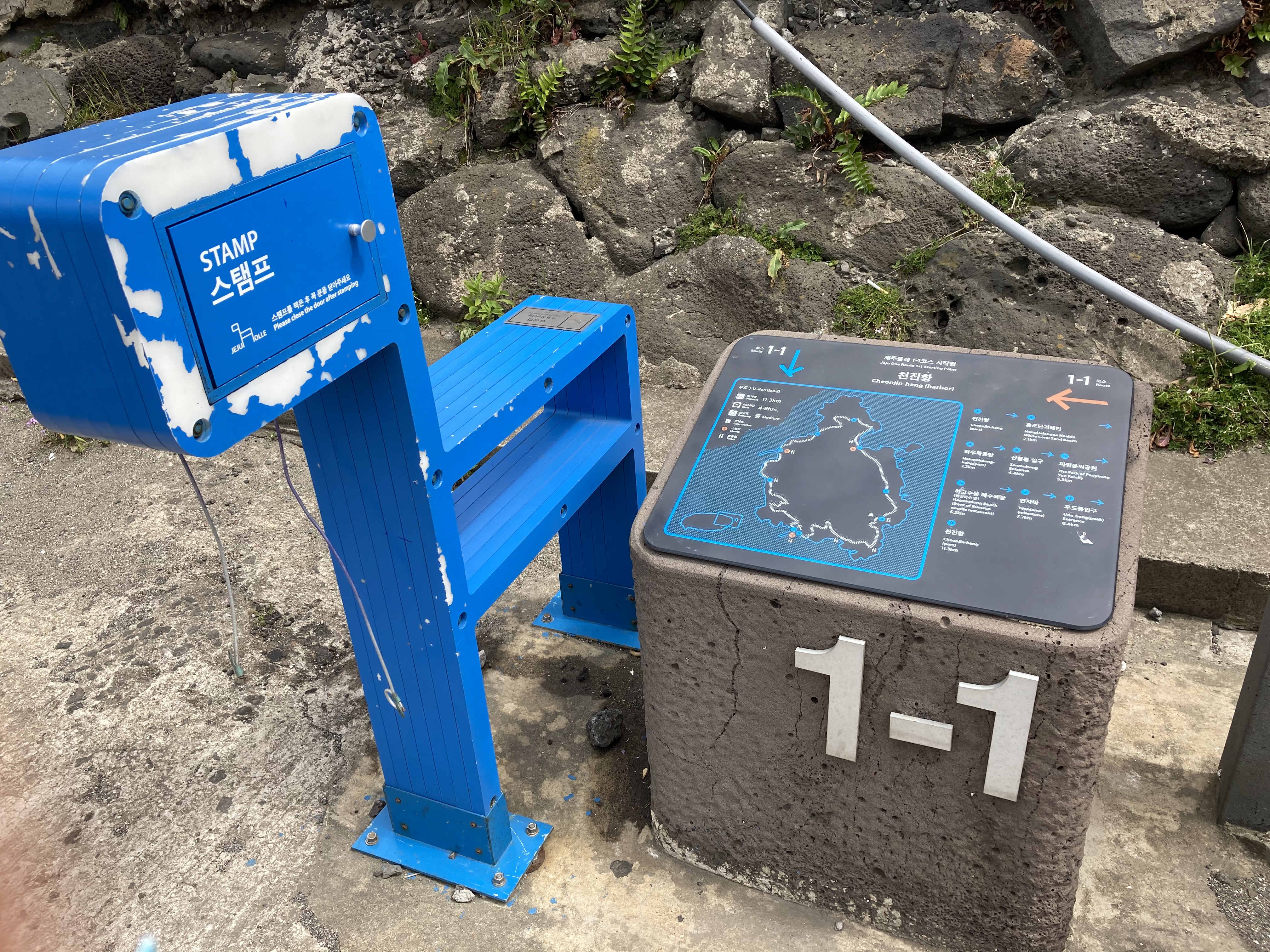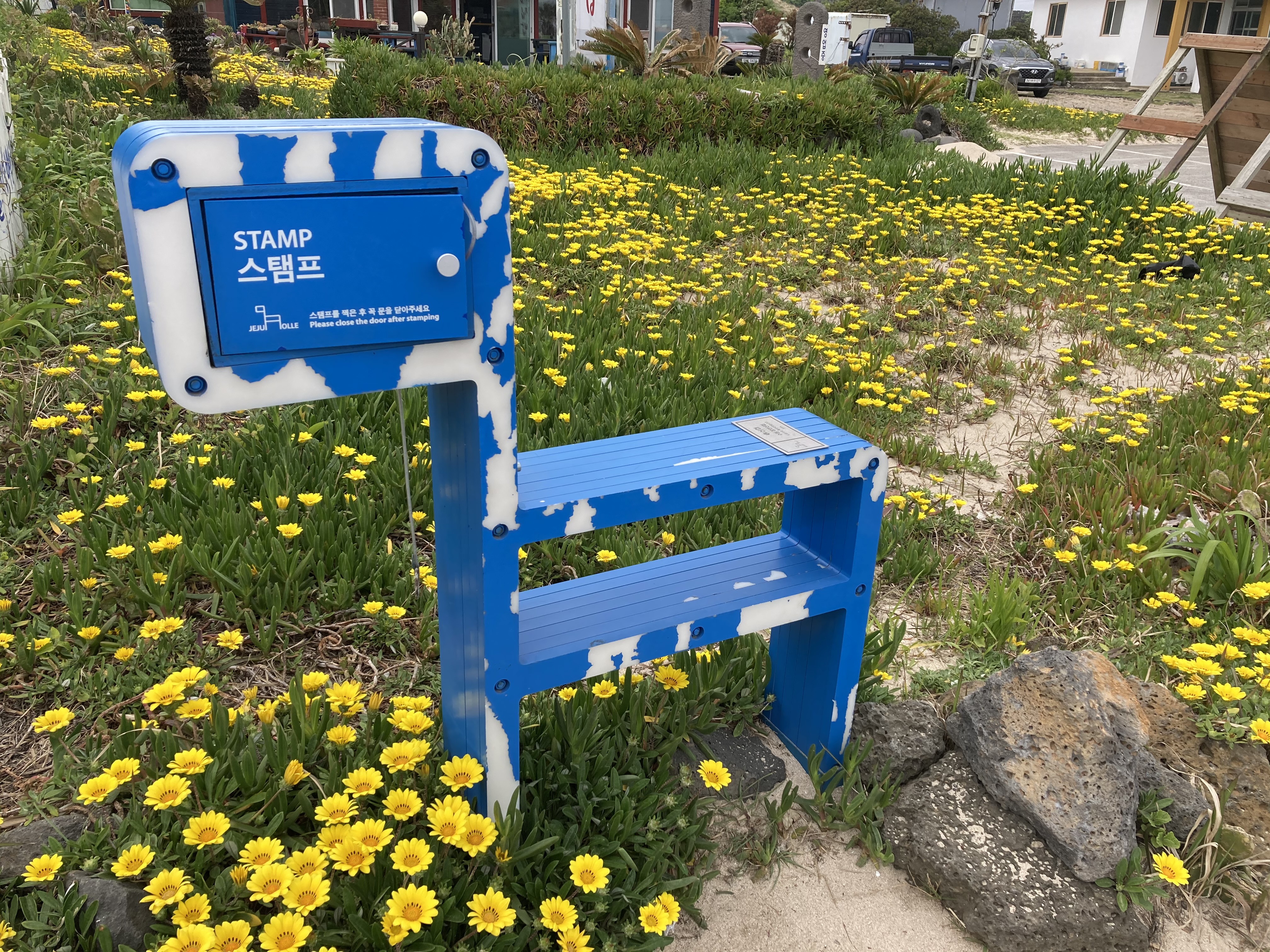 중간 스탬프가 있는 하고수동해수욕장.