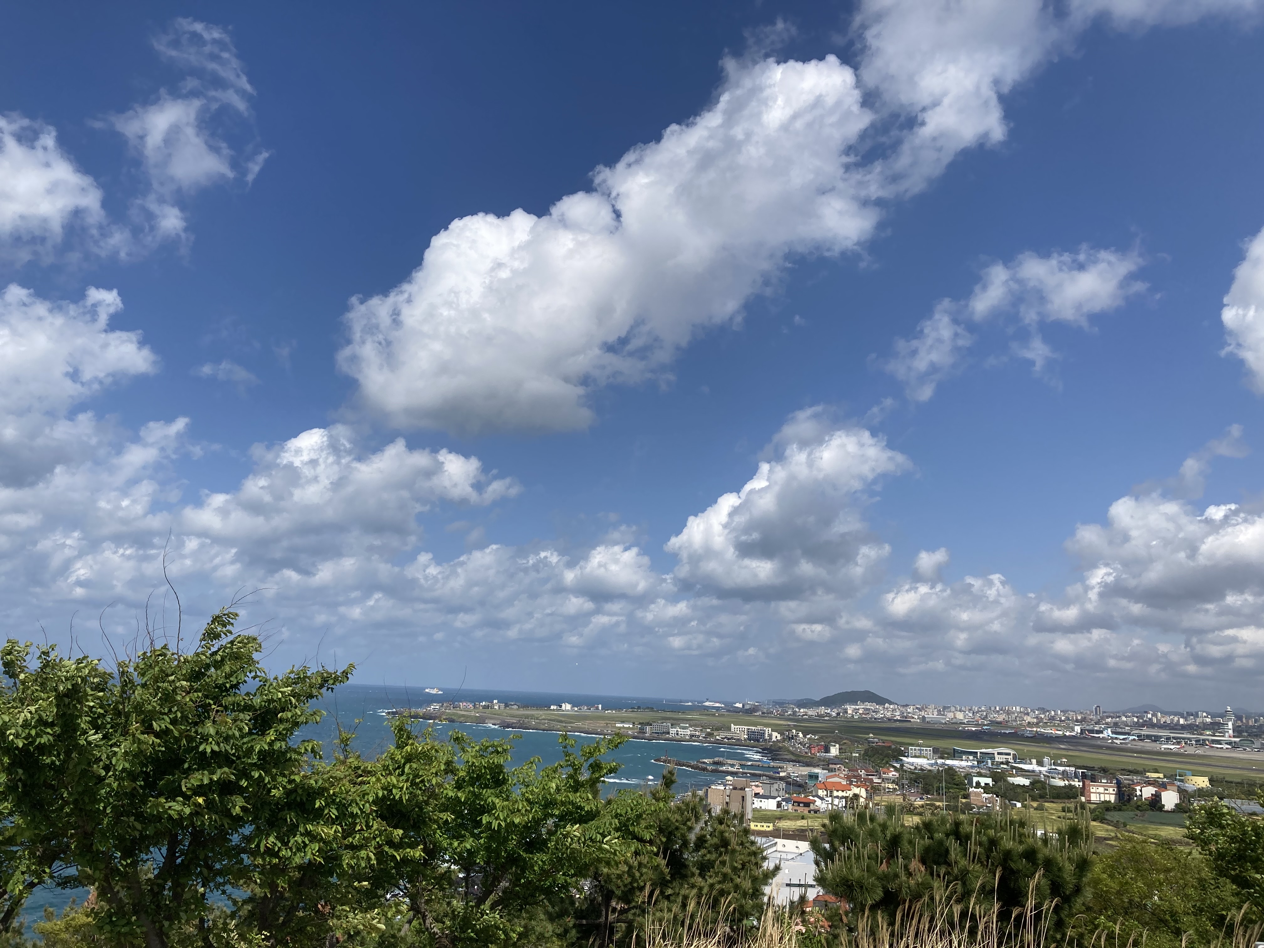 도두봉 앞에 위치 하고 있는 도두봉 호텔입니다 공항 뒤로 한라산이 멋지게 보이고 바다가 걸어서 3분 거리에 위치하여 있습니다