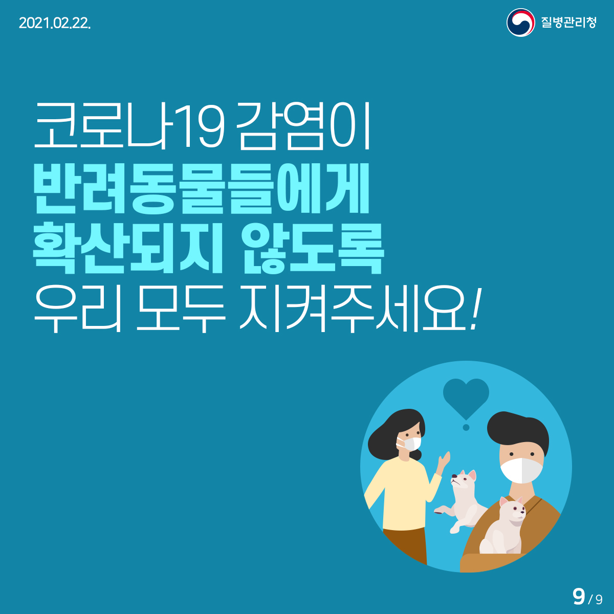 단독가구로 반려동물을 돌봐야 할땐 마스크와 장갑을 착용후 접촉 전후 세정 및 소독