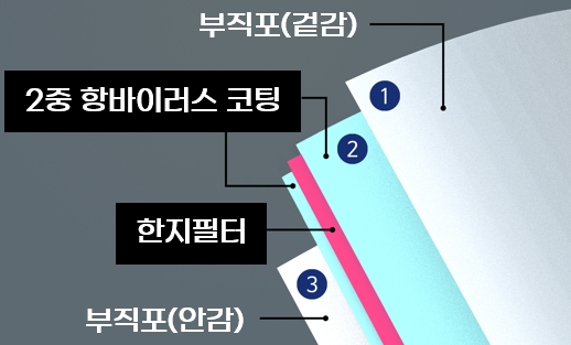 원단과 필터 일체화로 마스크 모양이 잘 유지되면