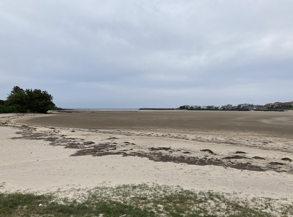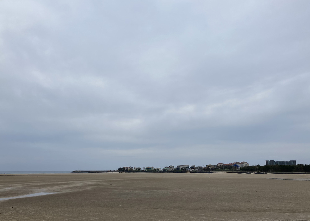 발가락 사이에 고운 모래가 닿는 느낌이 좋다.