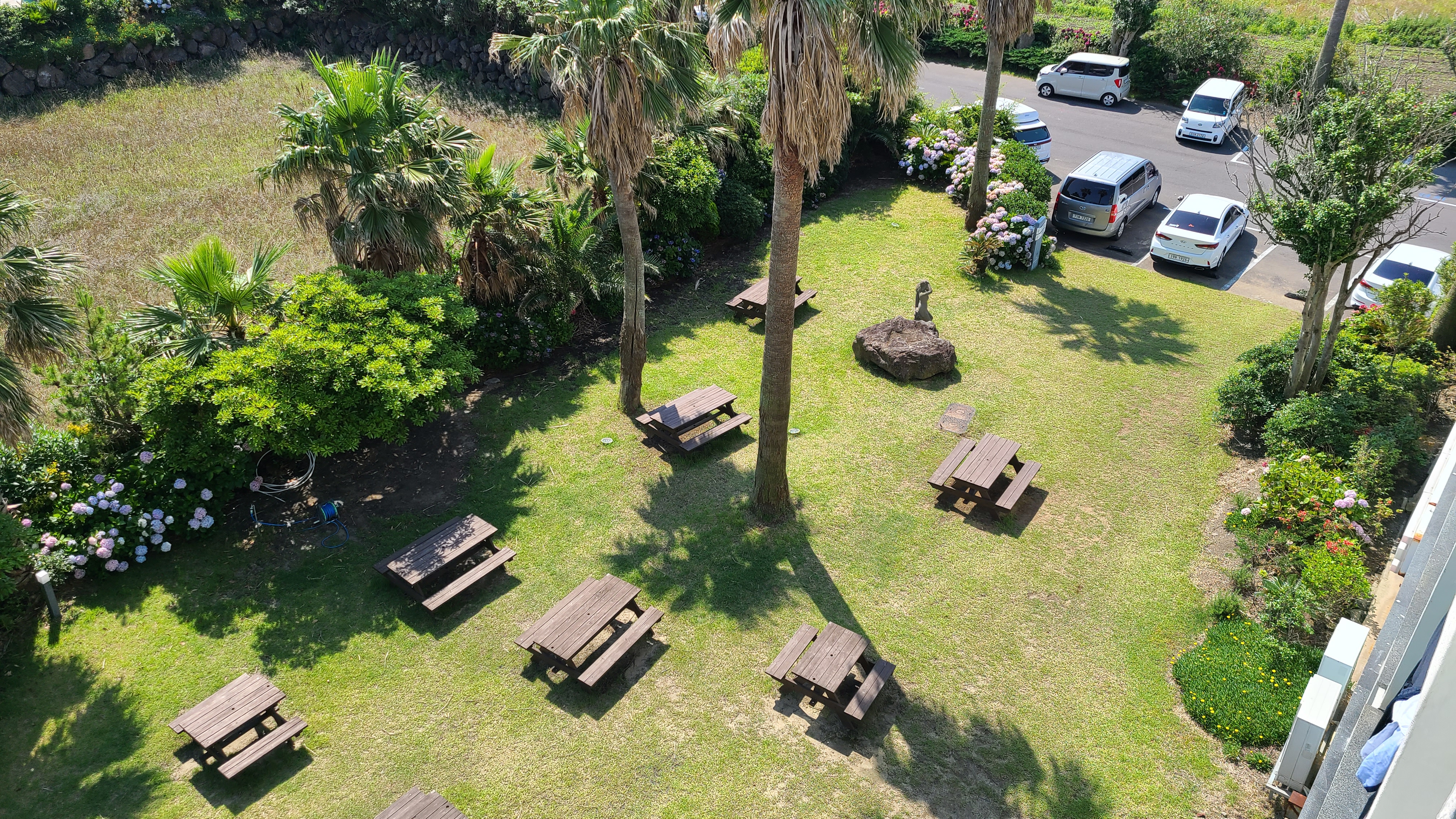 성산일출봉과 광치기해변, 섭지코지를 가기에 좋은 위치에 있는 성산 브라운스위트 호텔. 호텔 주차장 지상에 필로티 구조의 주차장이 있는데 주차대수가 넉넉한 편이 아니어서 저녁 늦은 시