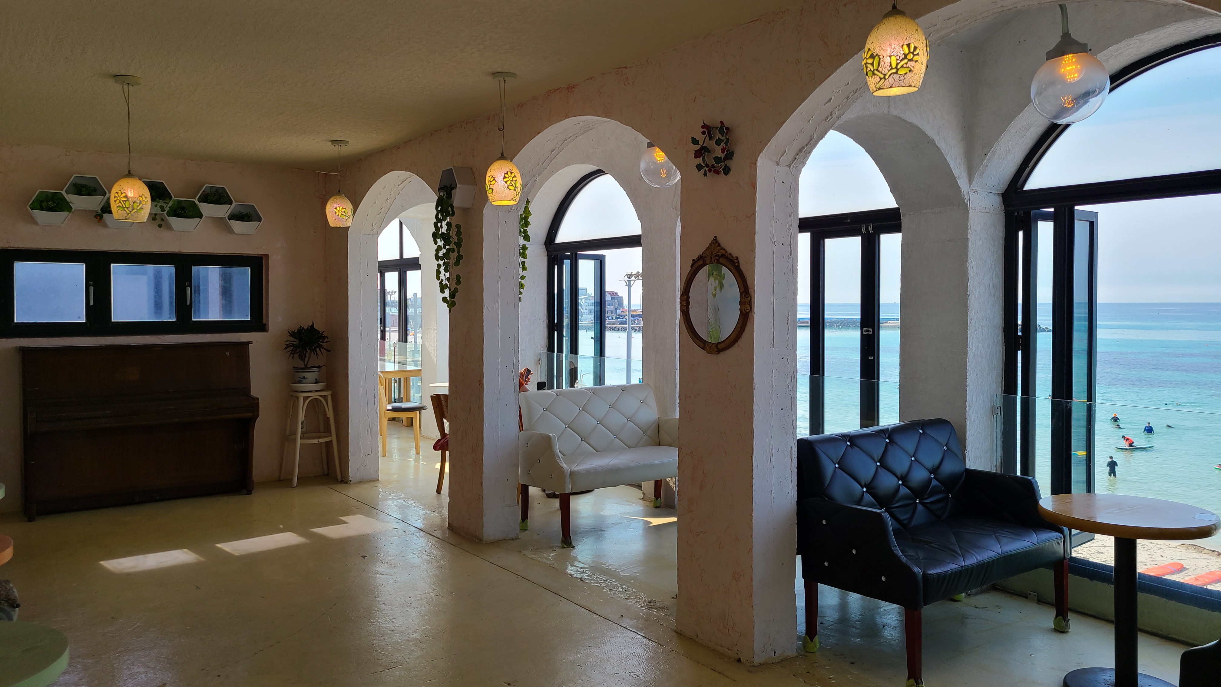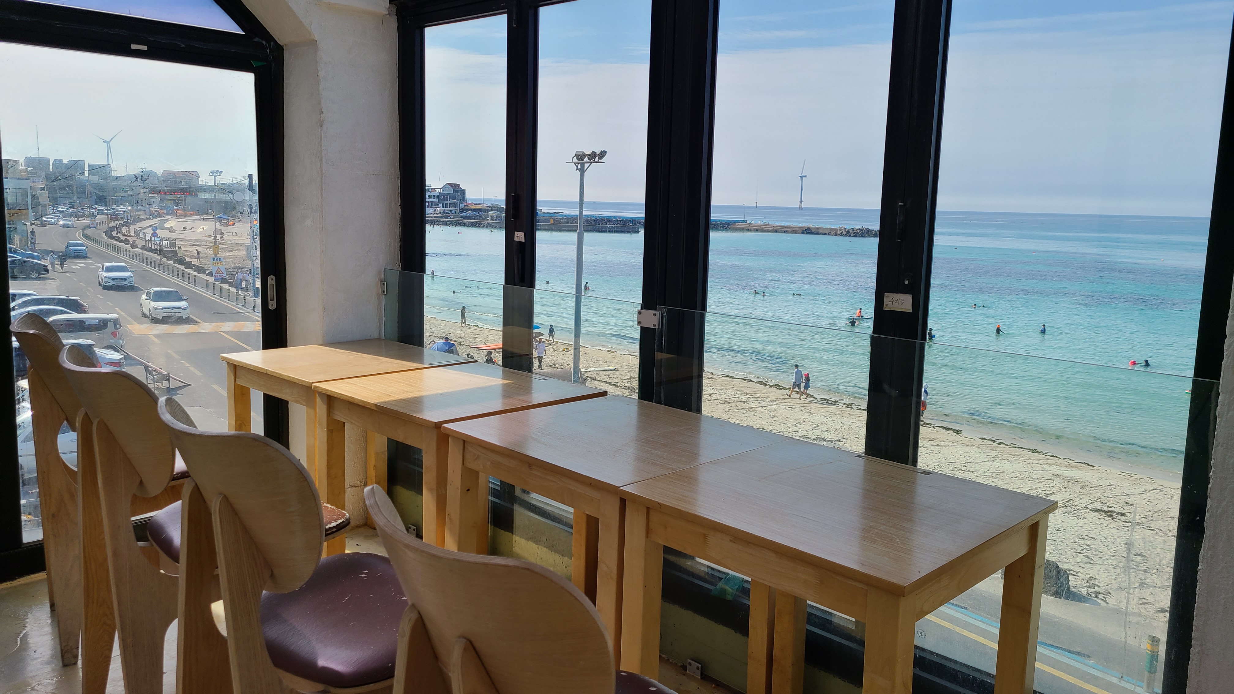 해변을 끼고 커피집들이 줄지어 들어선