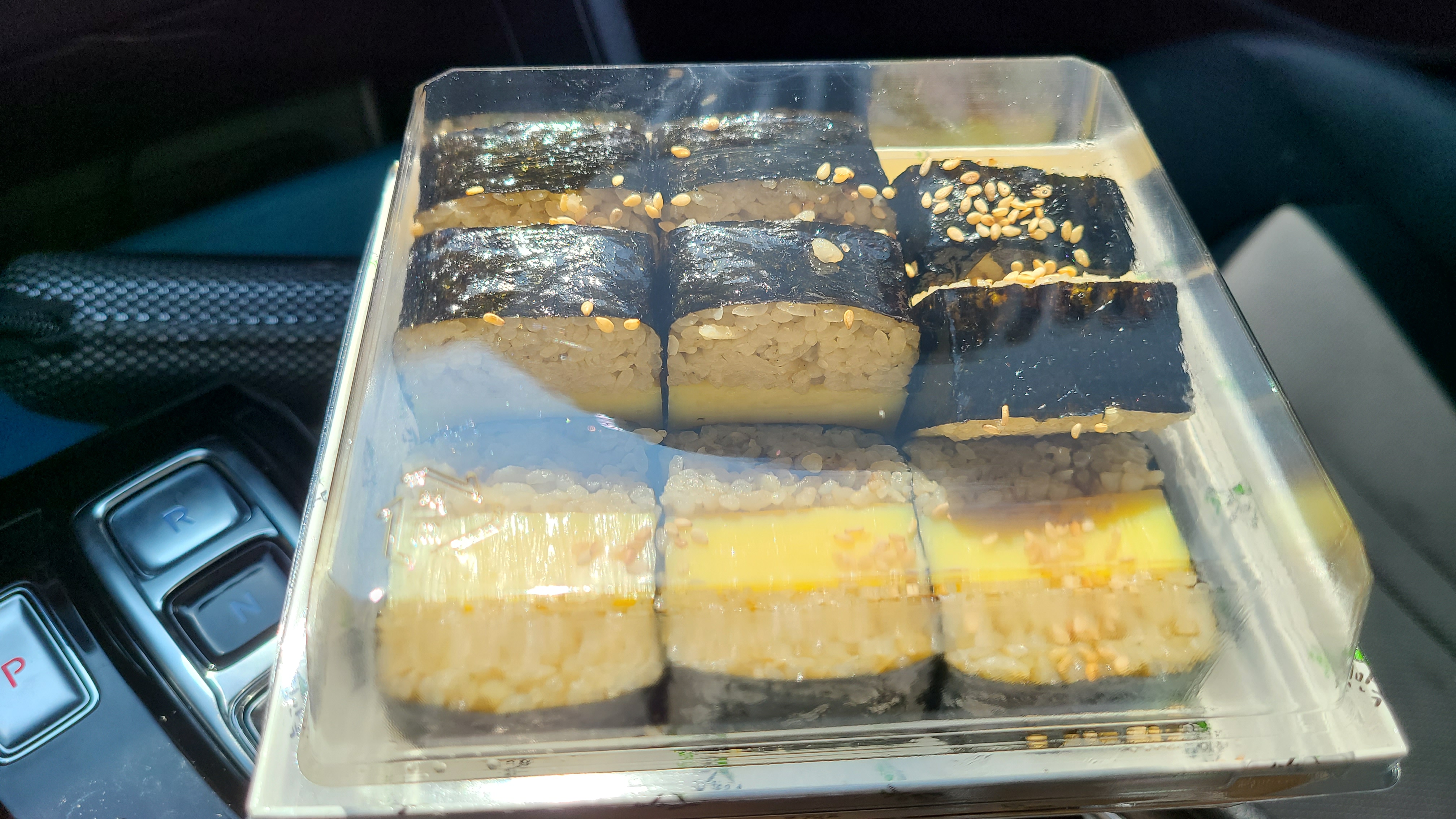 김밥이 슴슴하니 얹어 먹으라는 것.