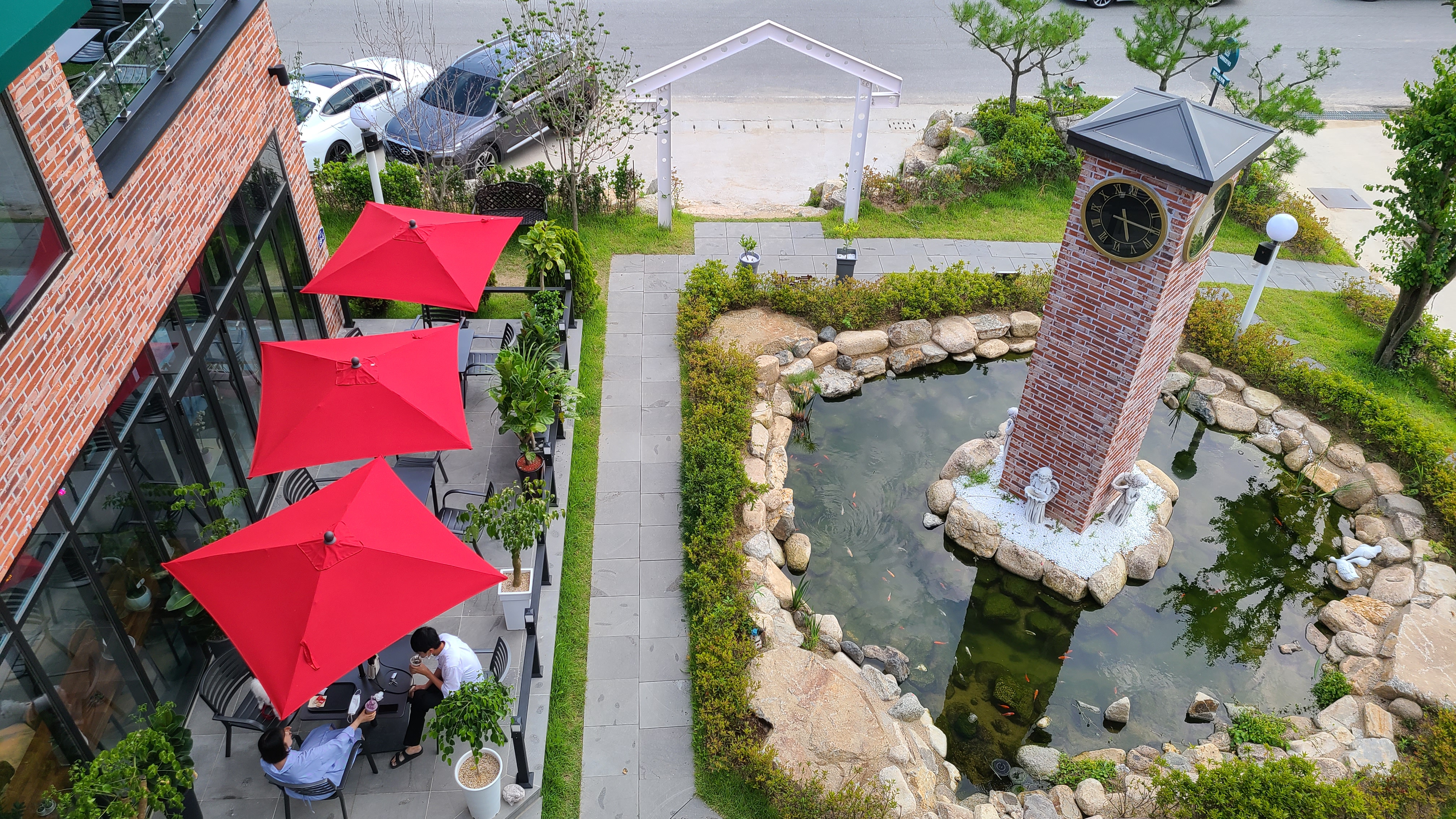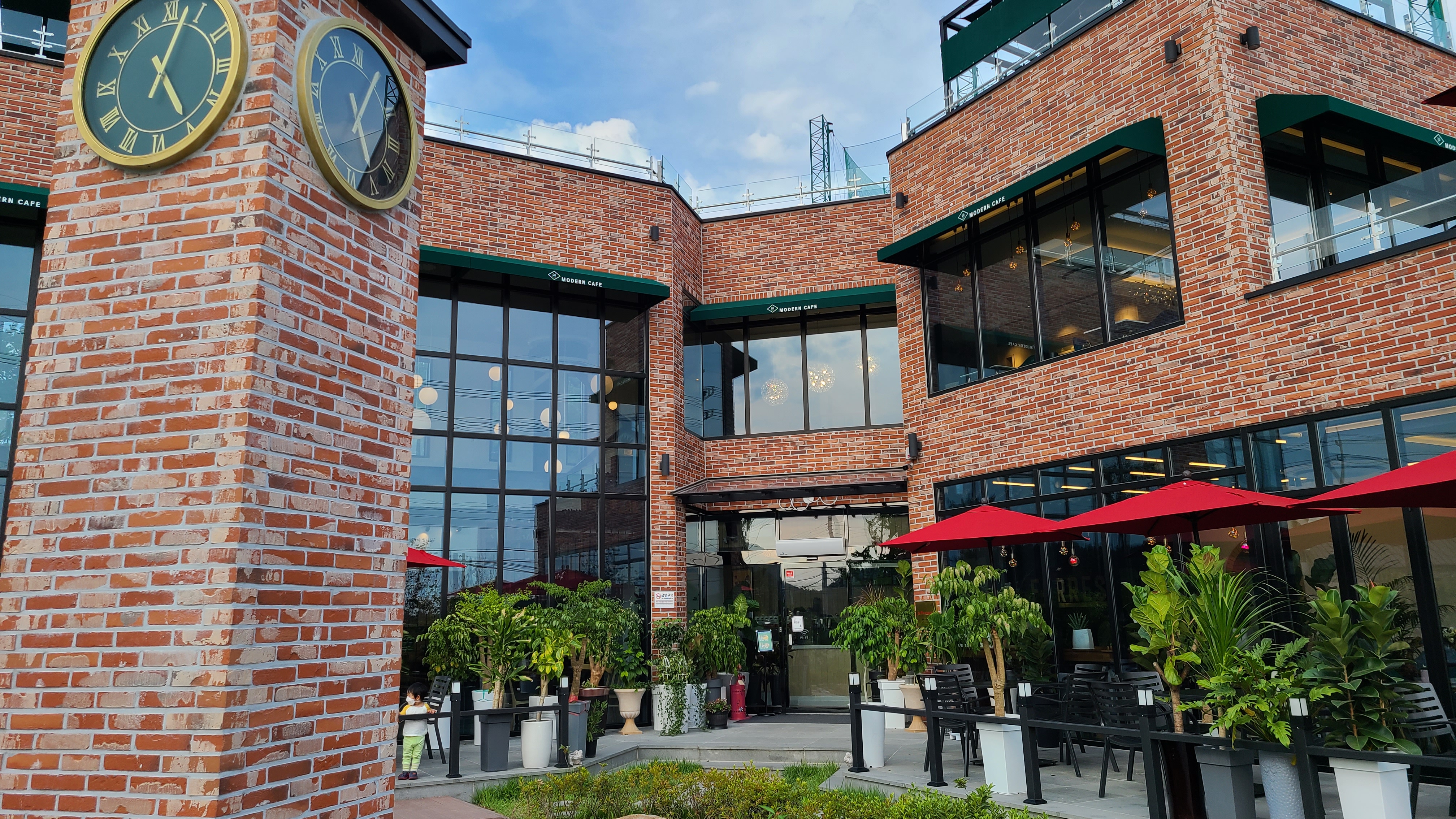 파란 하늘, 빨간 벽돌과 푸릇푸릇한 식물들의 조화가 너무 잘 어울리고 이뻐요