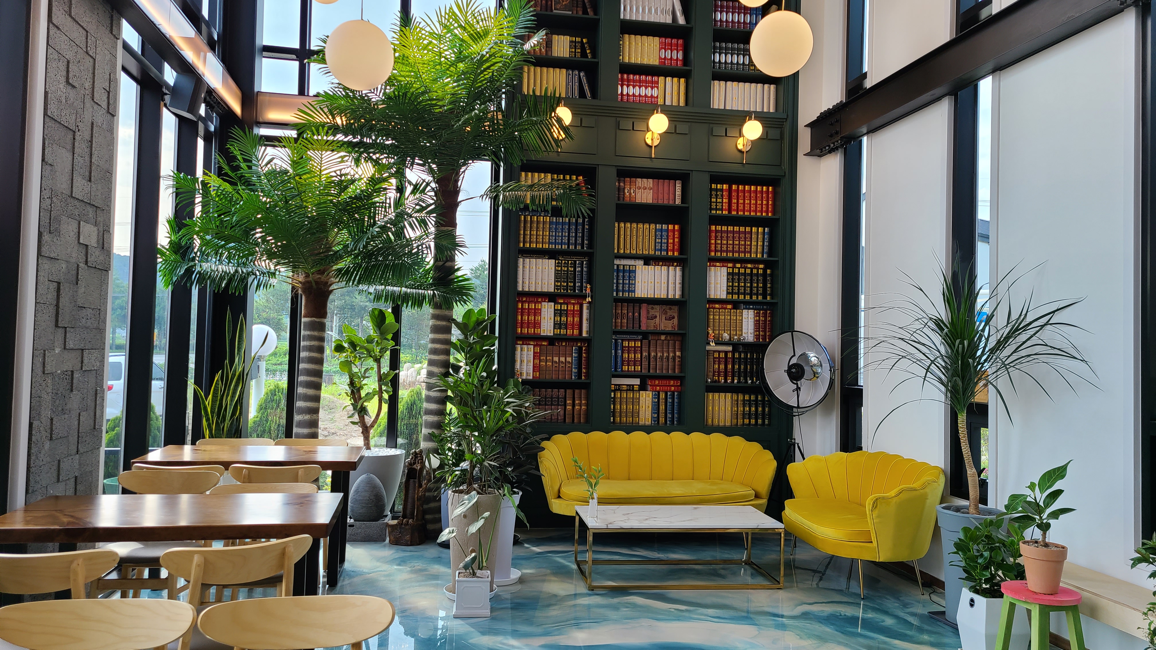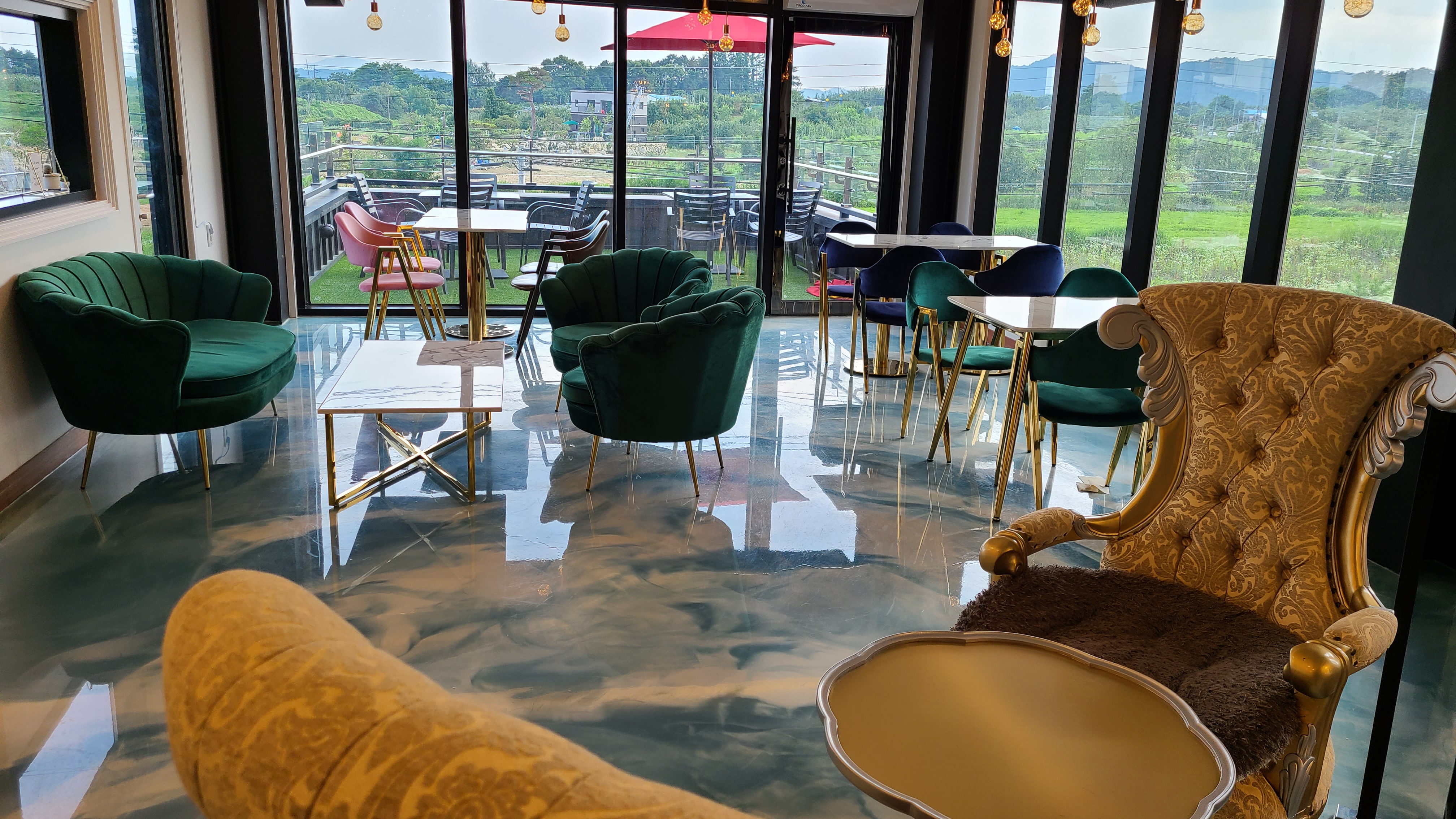 주문하고 좀 둘러보는데 1층 창밖으로 보이는 뷰가 참 예뻐요