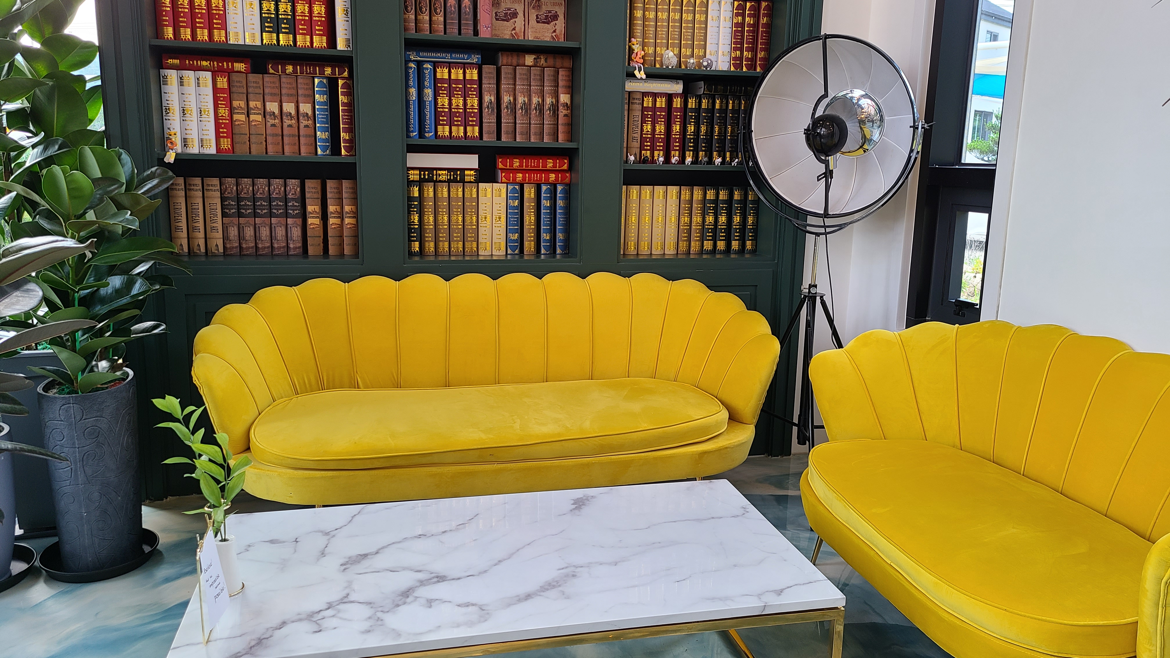 다른 한쪽엔 노란 의자와 해리포터에 나올 것 같은 책장이 있는 포토존이 있어요