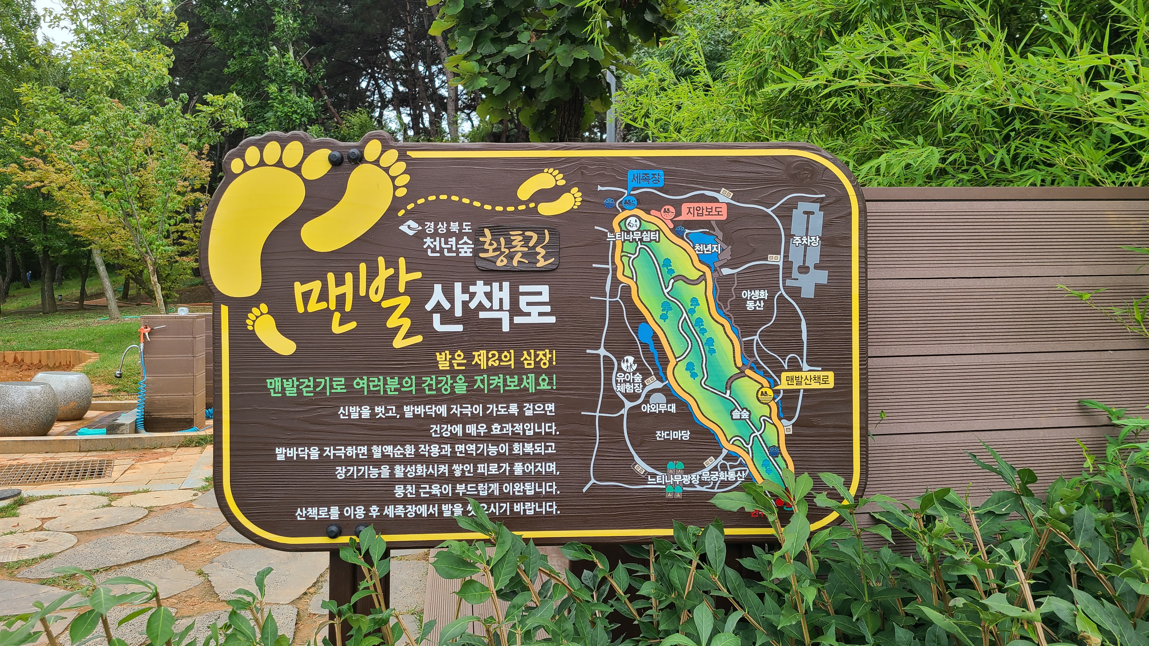 세족장에서 발을 씻은 후 황톳길 걷기에 나섰다.