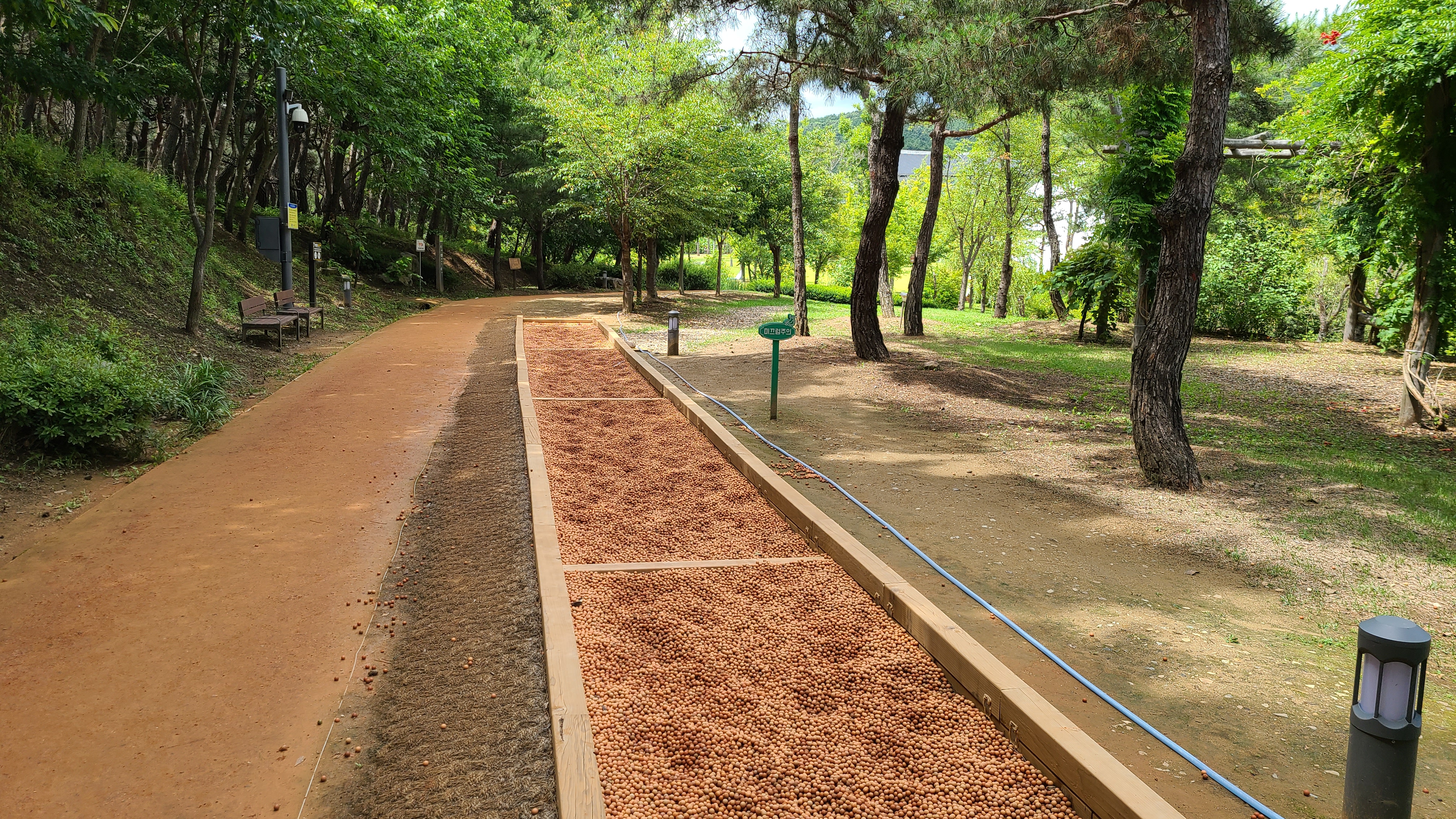 맨발걷기가 가능한 황톳길이 있다.