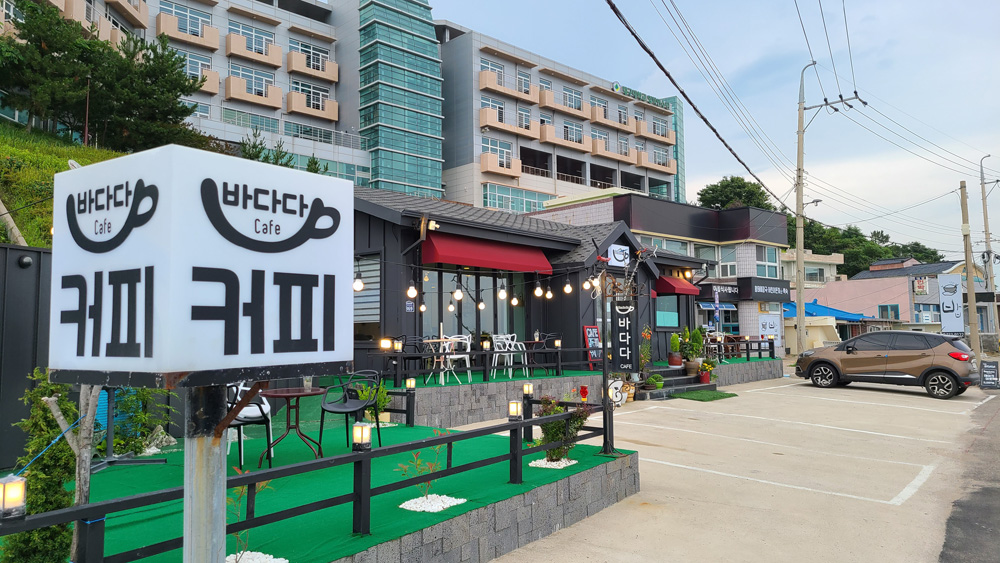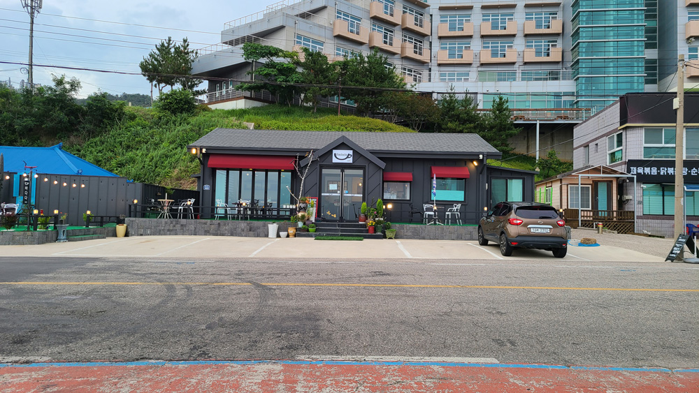 영덕 강구항에서 해맞이공원 가는 길 해안도로 앞에 오션뷰가 멋진 베이커피 카페, 무브온커피가 있다. 주차장이 넓어서 주차 걱정이 없지만 혹여나 주말, 공휴일이라 주차장이 만차라면 해안