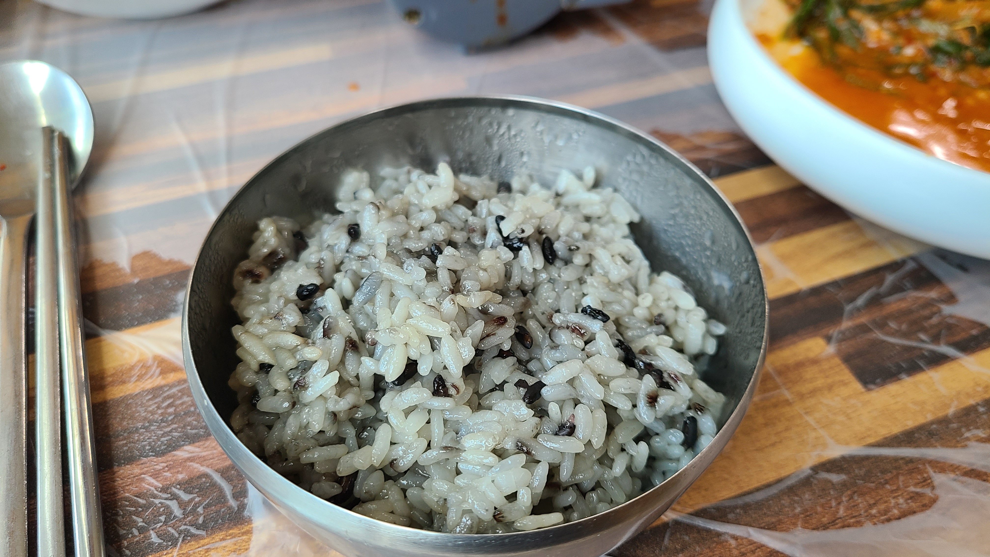 흑미밥이 나오는데 방금 한 듯 찰지고 맛있었다.