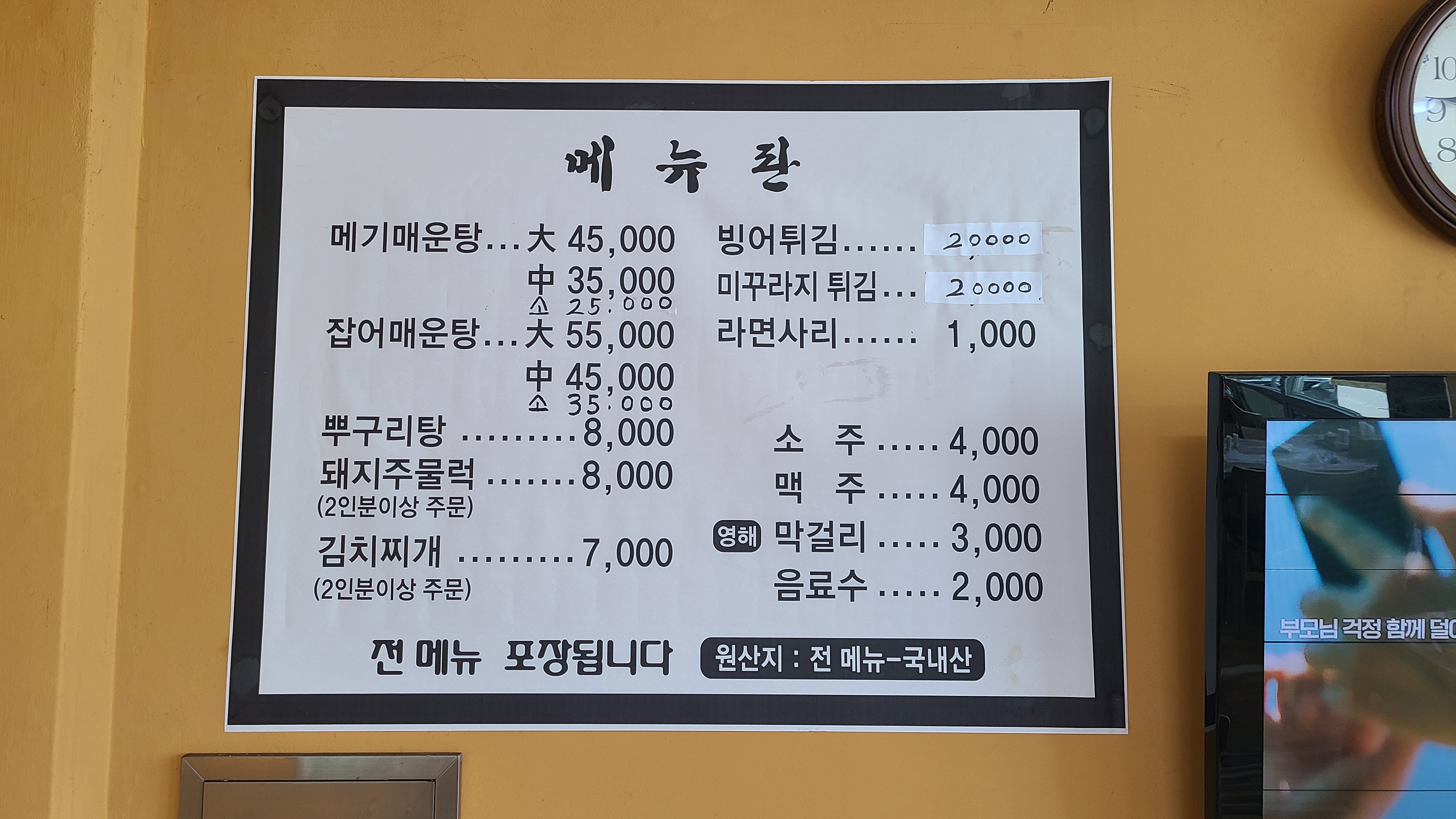 메기, 잡어 매운탕에 빙어, 미꾸라지 튀김.