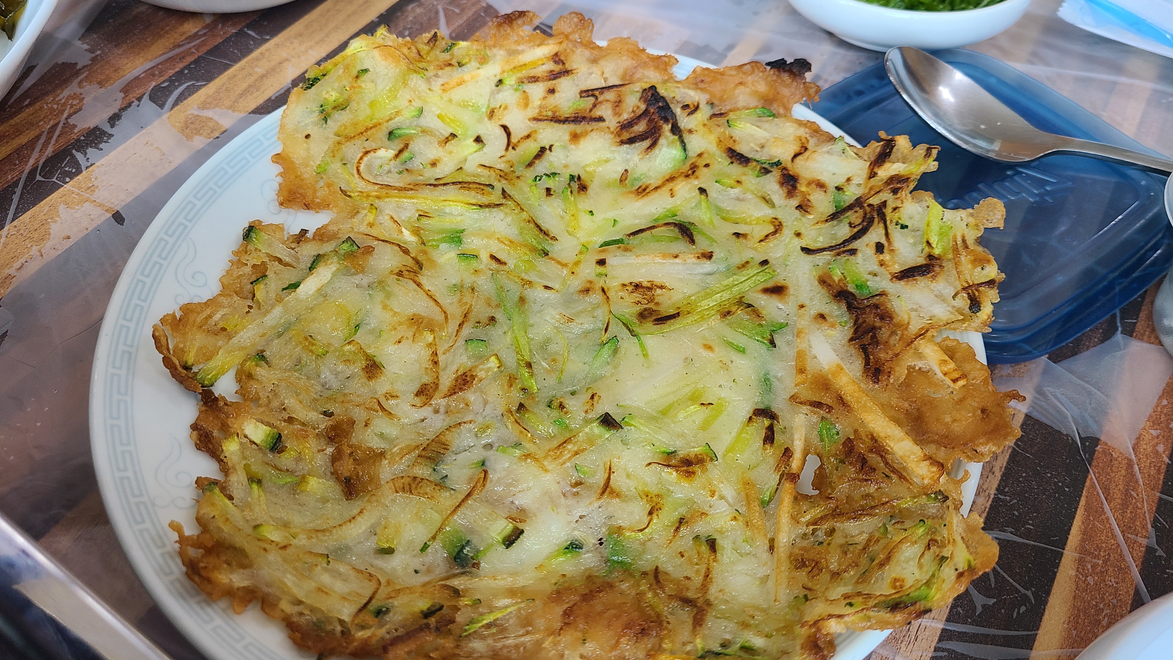 호박전은 가장자리가 바삭하니 잘 부쳐졌다.