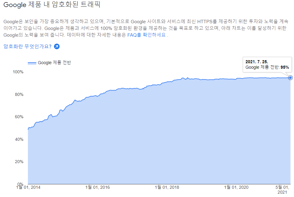 실제로 구글에서 암호화된 트래픽의 비율이