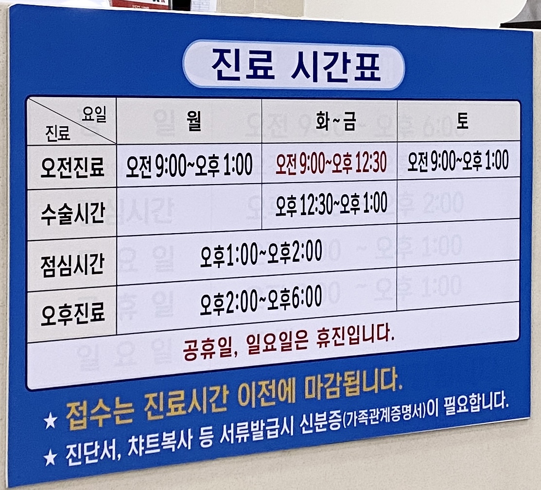 진료시간표가 변경되었으니 꼭 확인하고 예약 방문하세요.