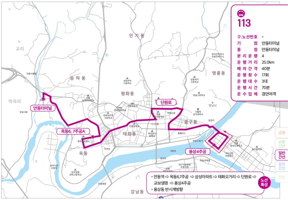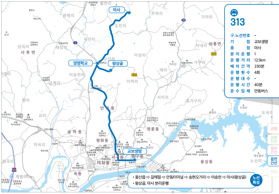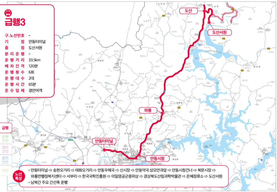 급행3번은 안동터미널과 도산서원을 이어주는 신설 노선입니다.