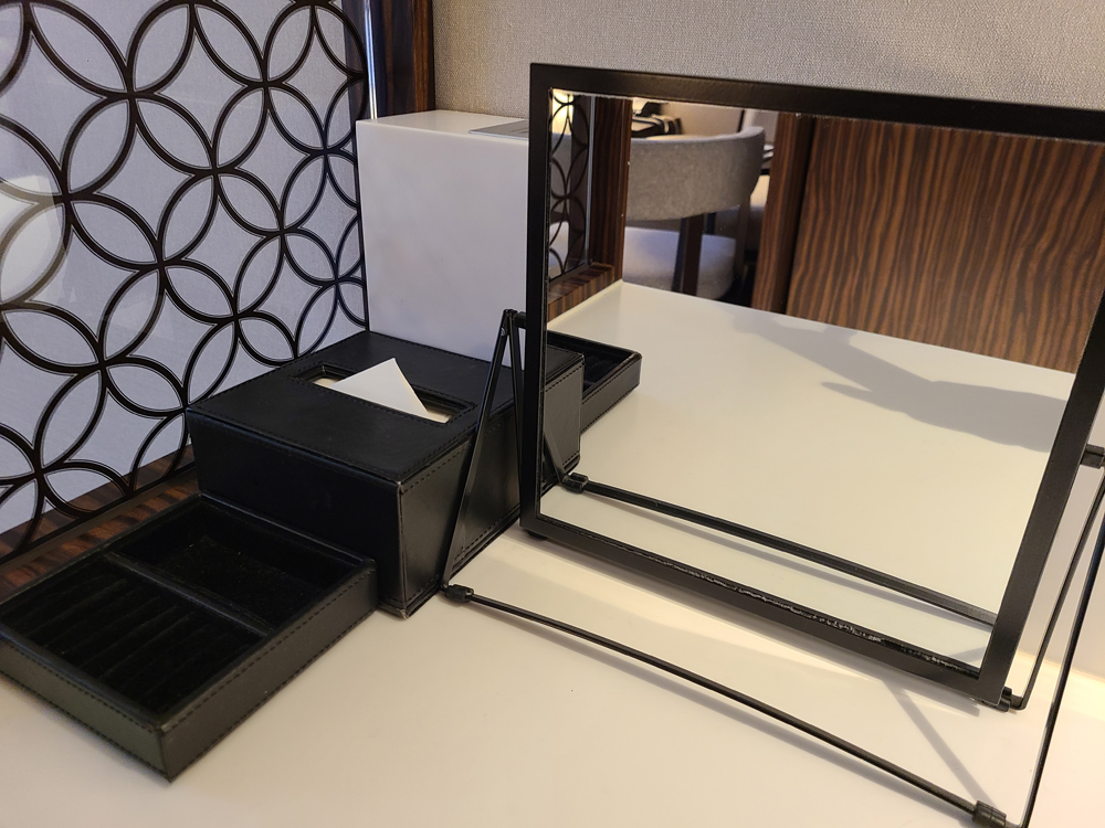 좁은 공간에 오밀조밀 배치를 잘 해놓긴 했지만 옷장에 있던 캐리어 랙은 침대 옆으로 가져와서 사용했습니다.
