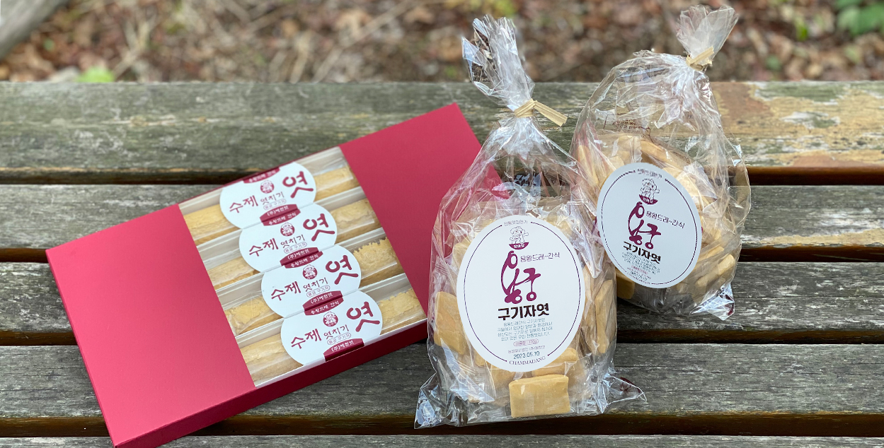 낙동강과 내성천이 만나 맑은 물이 풍족한 용궁면에서 약도라지와 구기자를 직접 재배하며 원물을 가공해 구기자엿을 만들어 판매하고 있어요.