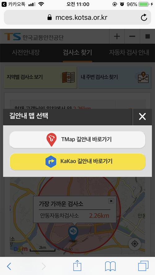 내 주변에 있는 가까운 자동차 검사소를 찾을 수 있다.