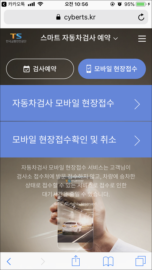 모바일에서 자동차검사 현장 접수가 가능하므로 대기 시간을 줄일 수 있다.