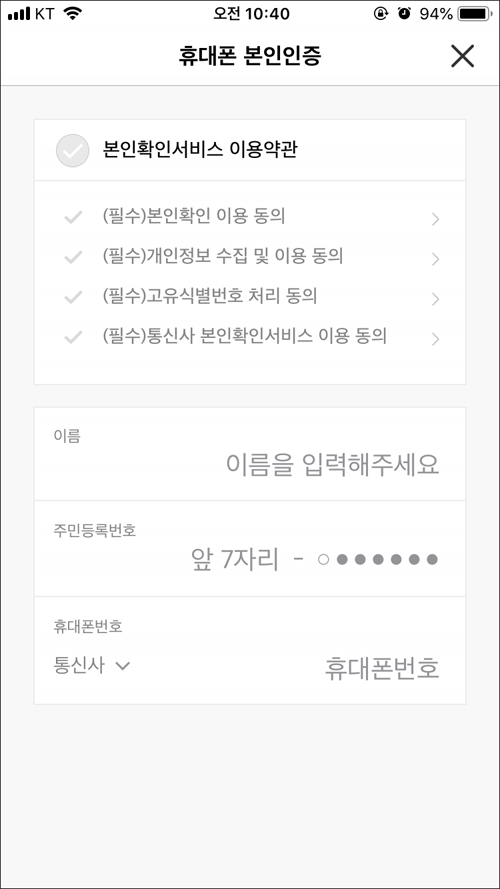 본인 명의의 휴대전화 번호로 내가 나임을 인증한다.