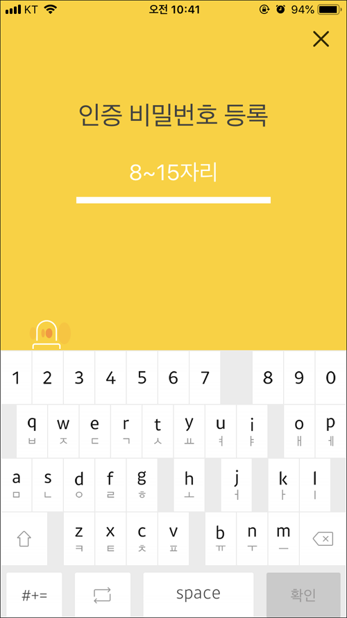 본인인증을 마치면 인증서 비밀번호를 등록하는 화면이 나온다.