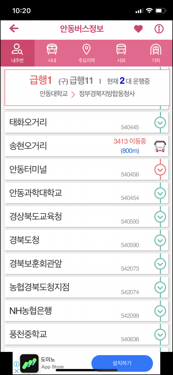 안동 시내버스의 실시간 도착 정보 및 노선 정보를 제공하는 ‘안동버스정보’가 아이폰용 모바일 앱을 애플 앱스토어에 정식 출시하고 서비스를 시작했습니다.