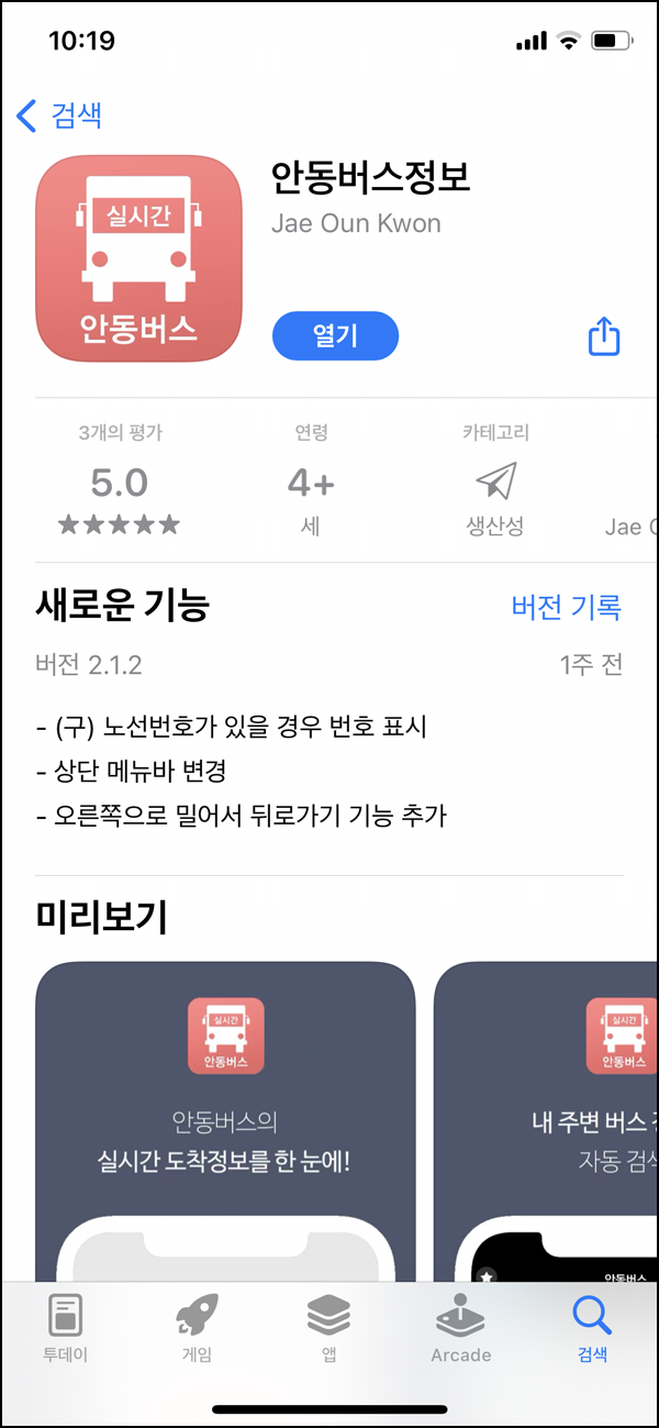 ‘안동버스정보’ 모바일 앱은 지역의 앱 개발 업체 IMP(아이엠피)가 2016년 안드로이드용으로 구글 플레이스토어에 서비스를 시작해 좋은 평가를 받고 있었지만 아이폰용 앱은 없어 아이폰 이용자들의 서비스 출시 요청이 많았습니다.