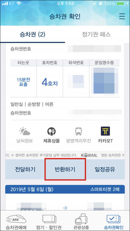 코레일톡 승차권 반환하기(기차표 환불받기)