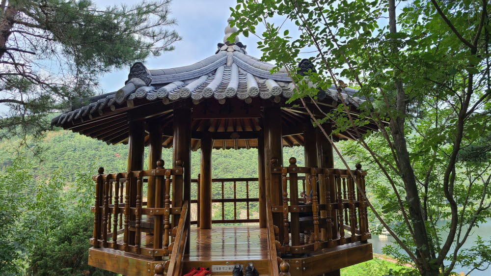 정자에서 옥연지를 내려다 본다.