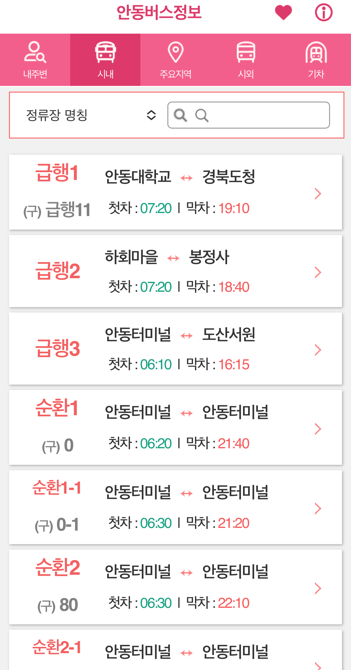 앱검색명 : 안동버스정보
