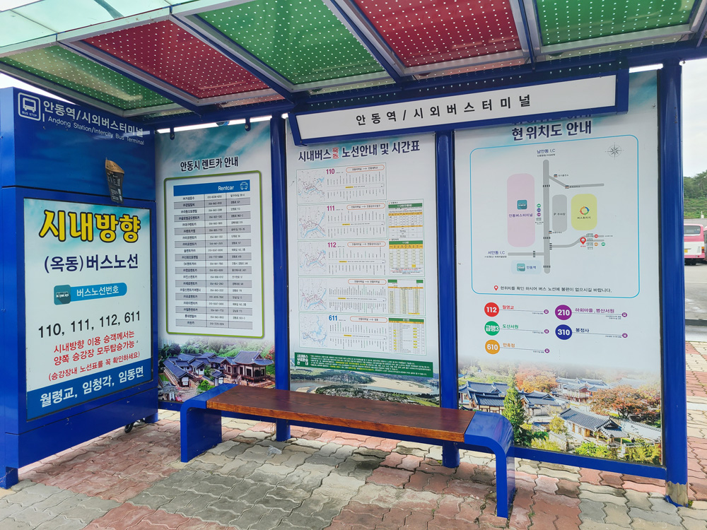 순환 노선과 급행 노선이 정차하는 정류장으로 도산서원, 만휴정, 길안면 환승 승객은 이 곳에서 버스를 타면 됩니다.